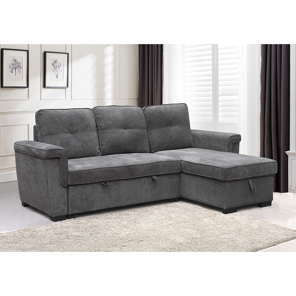 Naomi Sleeper Sofa Chaise with Charcoal Grey Fabric Cover