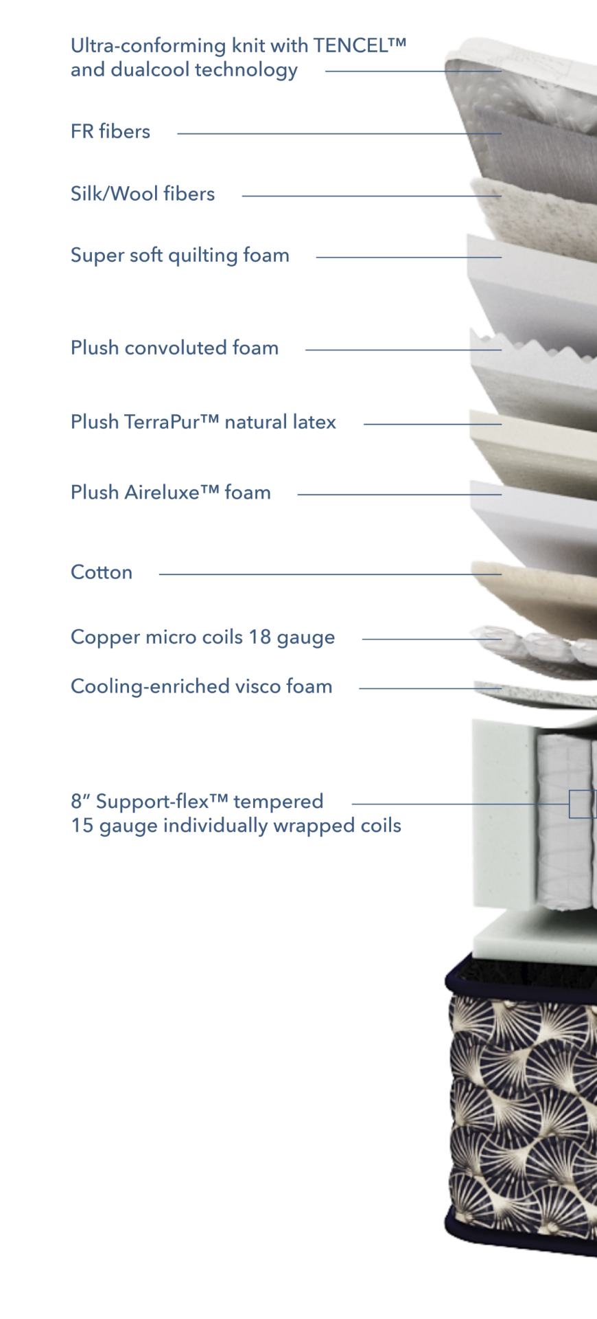 TENCEL™ PANEL Crafted with natural TENCEL™ fibers, this ultra-conforming knit panel is hypoallergenic, breathable, and features technology that delivers cooling comfort throughout the night.