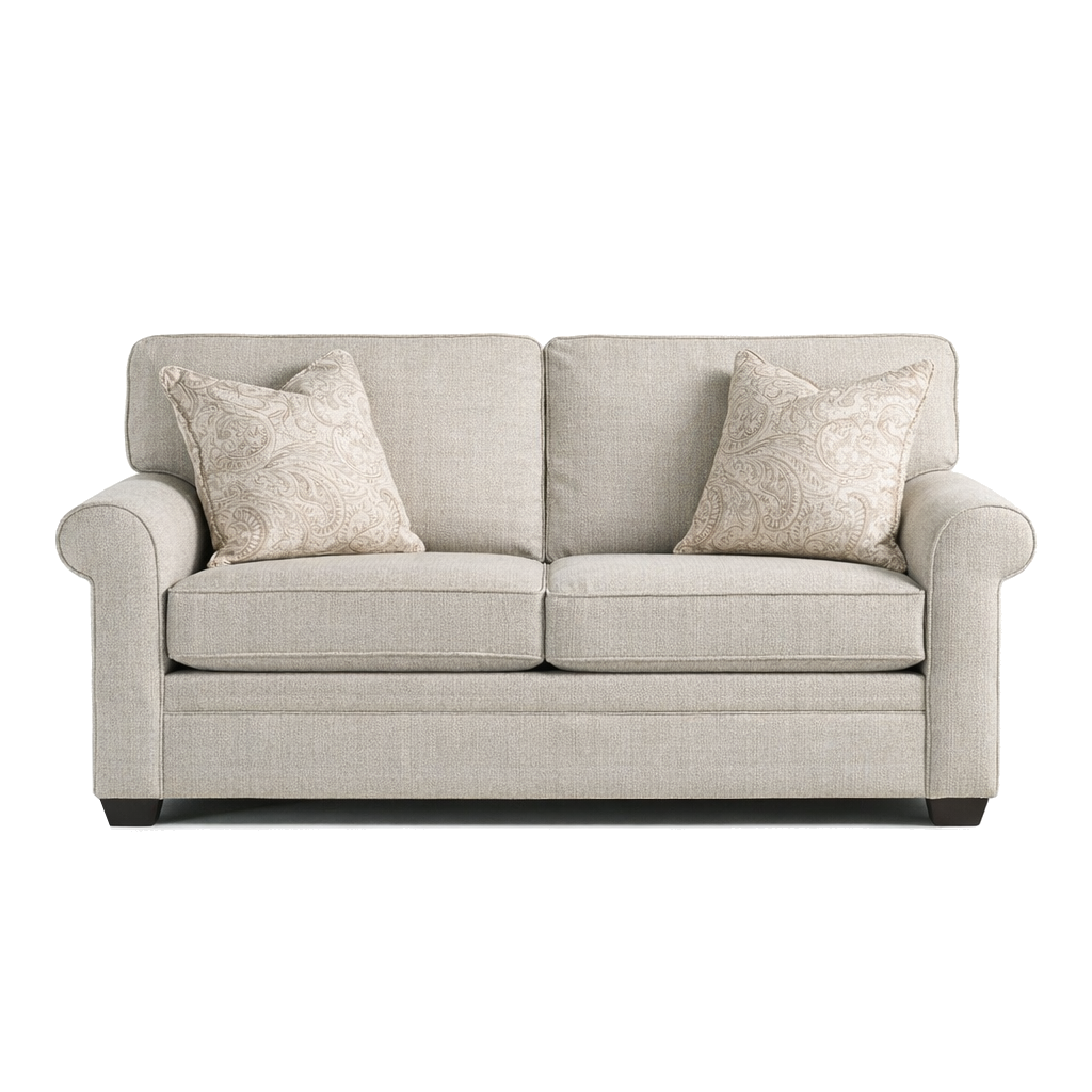 Upgrade your space with the Kimberly Queen Sleeper Sofa, wrapped in a chic white fabric. Designed for durability, it features a hardwood frame and premium spring support, while 1.8-density foam cushions and feather-filled pillows deliver superior comfort. The queen-size bed functionality makes it perfect for hosting, blending practicality with sophisticated design. Proudly made in the USA for quality you can trust.