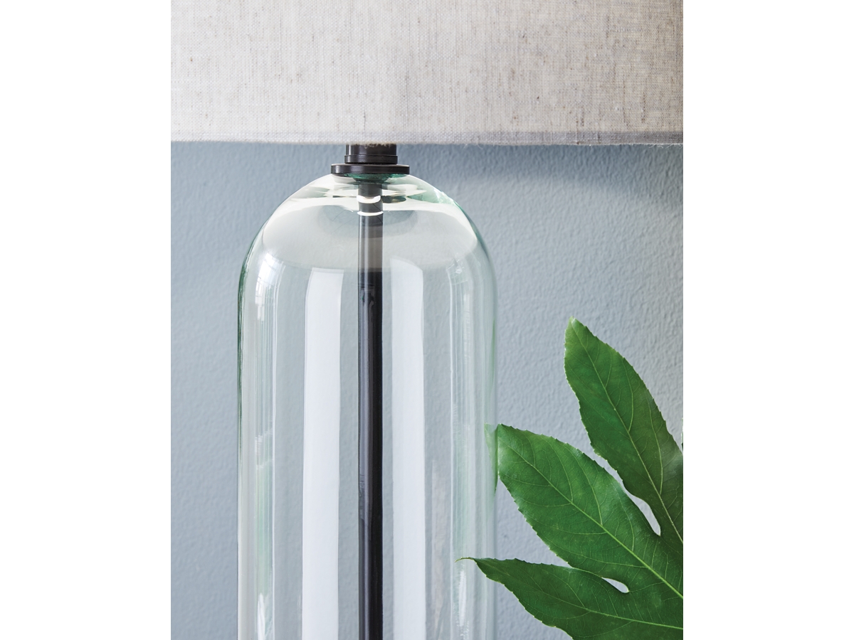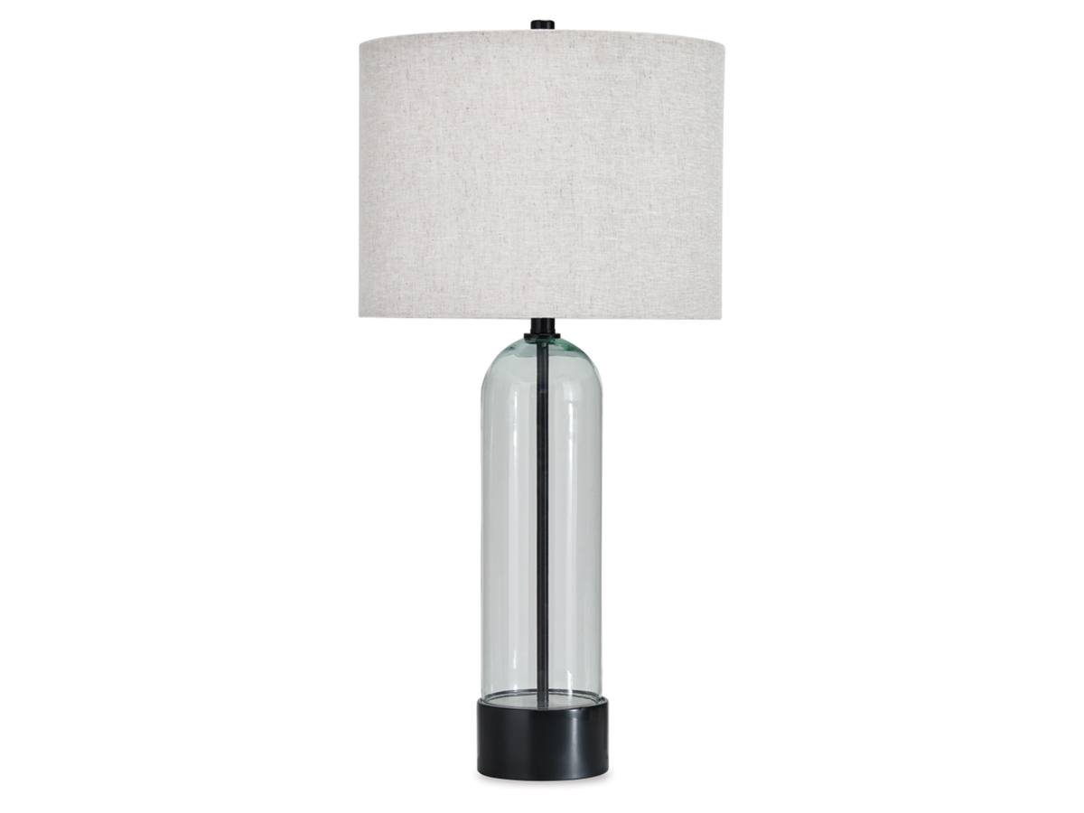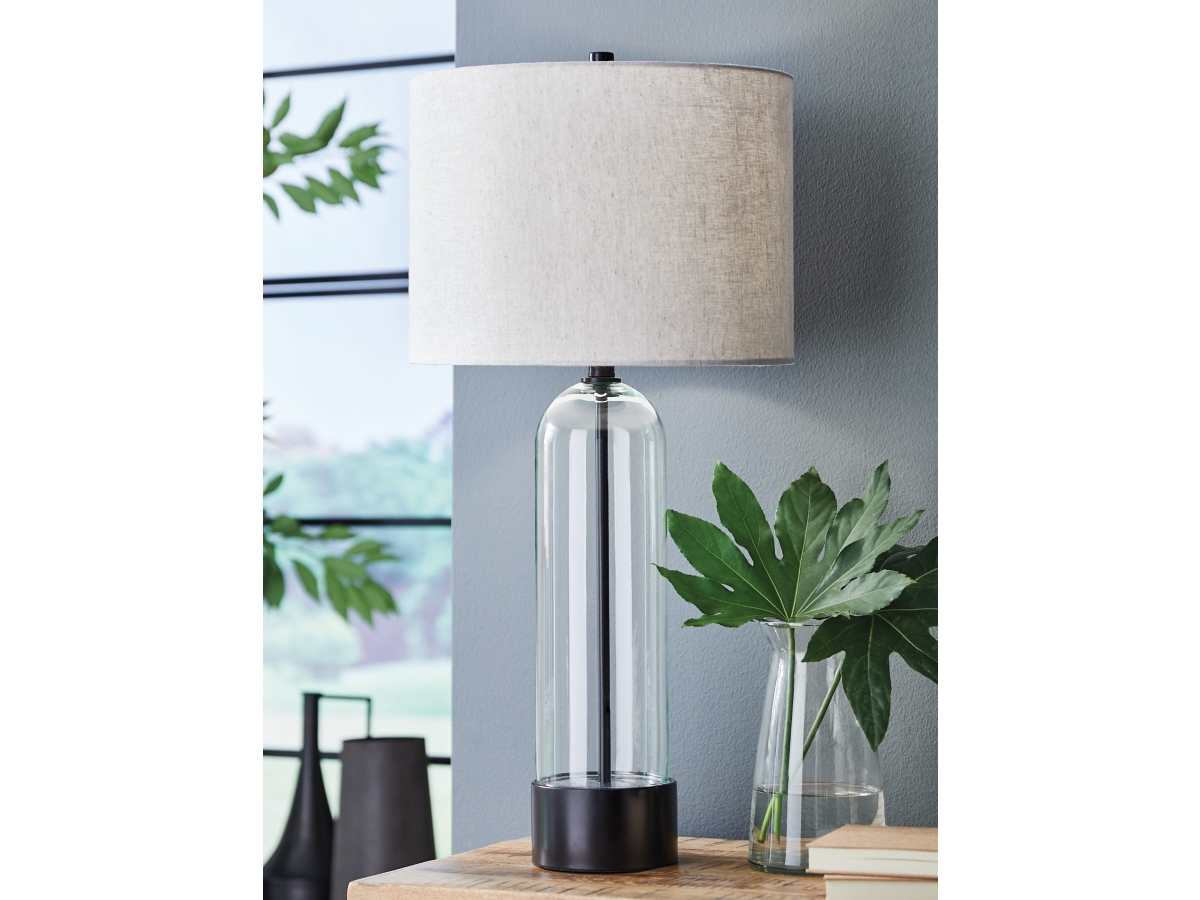 The Chandler Table Lamp from Ashley combines modern styling with functional lighting for everyday spaces. Featuring a clear glass and metal base with a sleek black finish, this lamp offers a clean look that complements a variety of décor styles while coordinating with the Chandler collection.