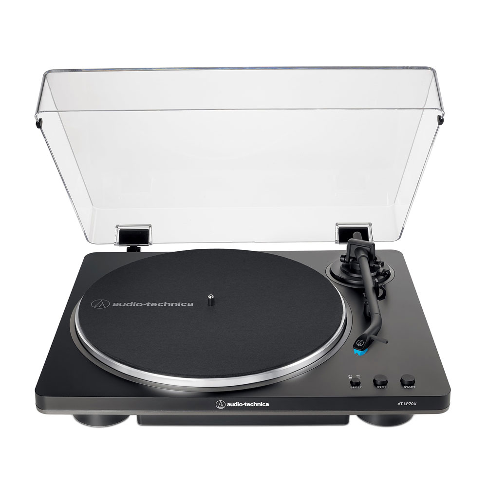 The AT-LP70X Fully Automatic Belt-Drive Turntable is the perfect beginner turntable for those beginning their audiophile journey. Designed to offer a quality sound experience for those who love listening to records, from flipping through albums at the record store to placing a record on the turntable, cueing the tonearm, and sitting back with the album art in hand to enjoy music as the artist intended.