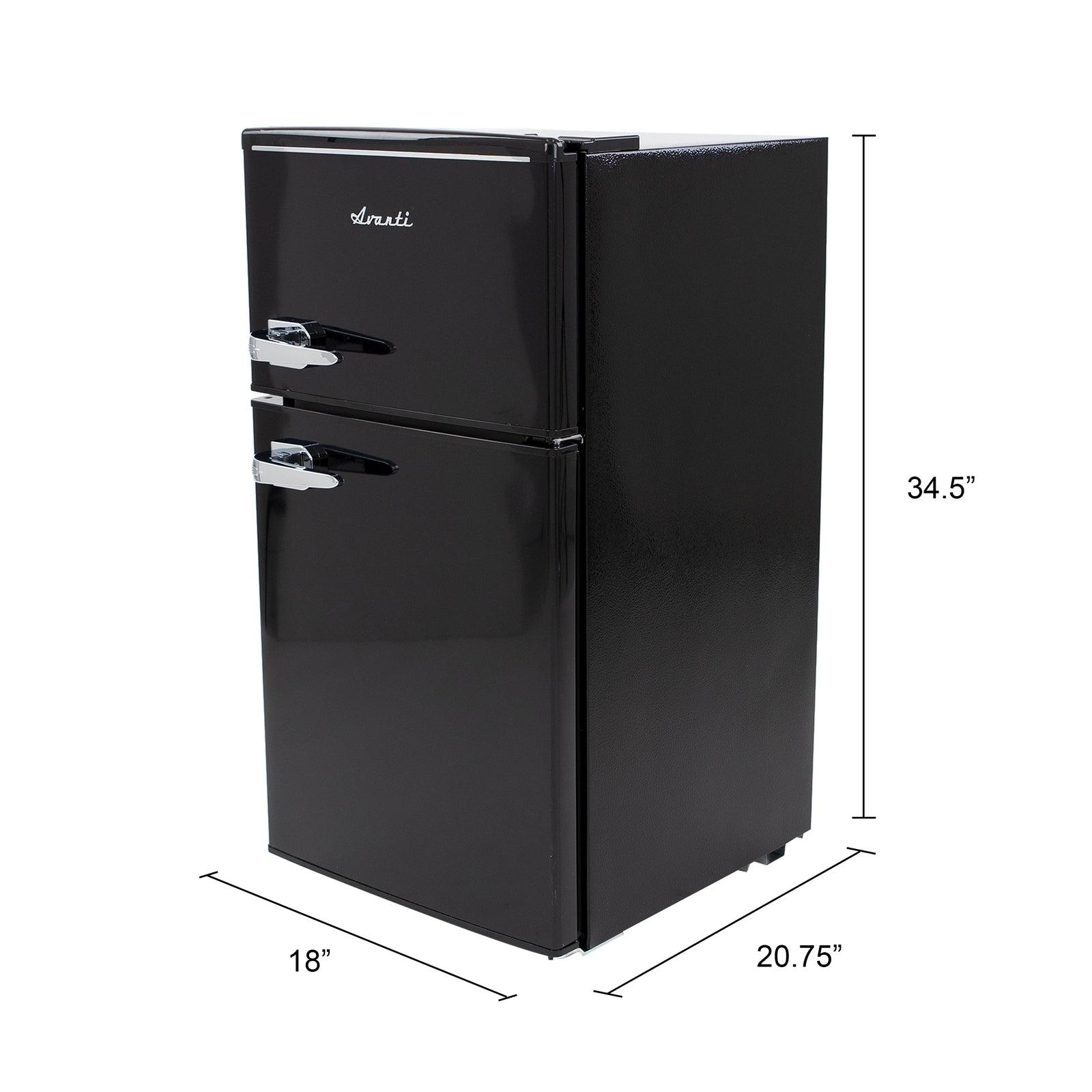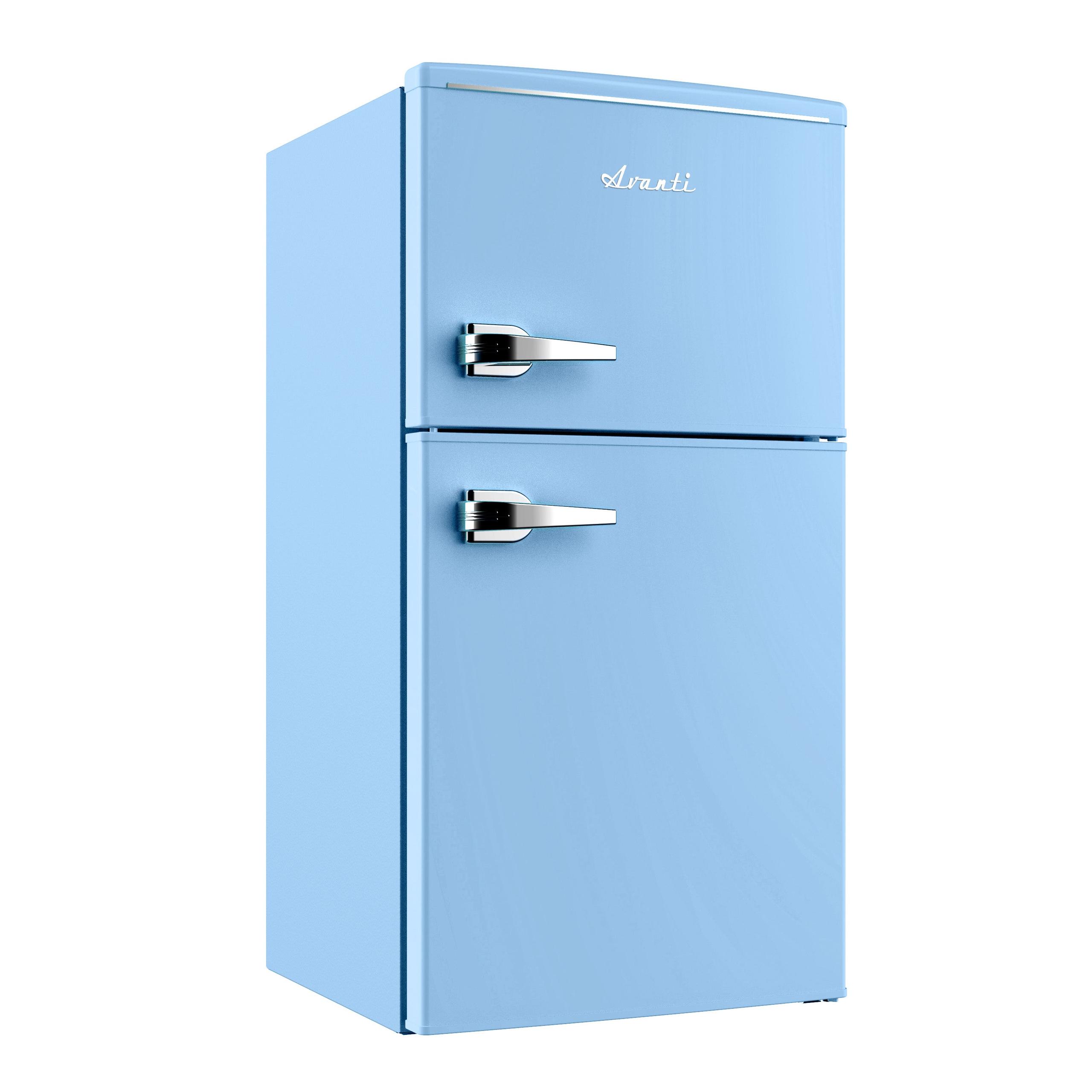 This retro-designed compact fridge offers a cool, colorful, and sophisticated look for any setting. The 3.0 cu. ft. freezer/refrigerator is an ideal fit for your home, dorm, or office, saving space while keeping your favorite foods and beverages within reach. Double-door design allows for easy access to salads, fruits, and snacks throughout your day, and the unit s spacious freezer capacity saves you money as you store frozen foods in bulk. Manual defrost maintains optimal temperature with the turn of a dial. Built-in door shelves and the beverage can dispenser make food storage simple, accommodating 2-liter bottles, six <6> 12 oz. drinks, and assorted condiments. Two adjustable, removable glass shelves allow for easy cleaning and viewing of your food items at-a-glance, and mechanical temperature control allows for easy selection of the unit s correct settings with the turn of a dial. This chicly designed compact fridge complements any setting. Model includes Avanti 1-year manufacturer limited warranty.