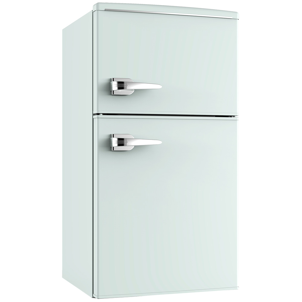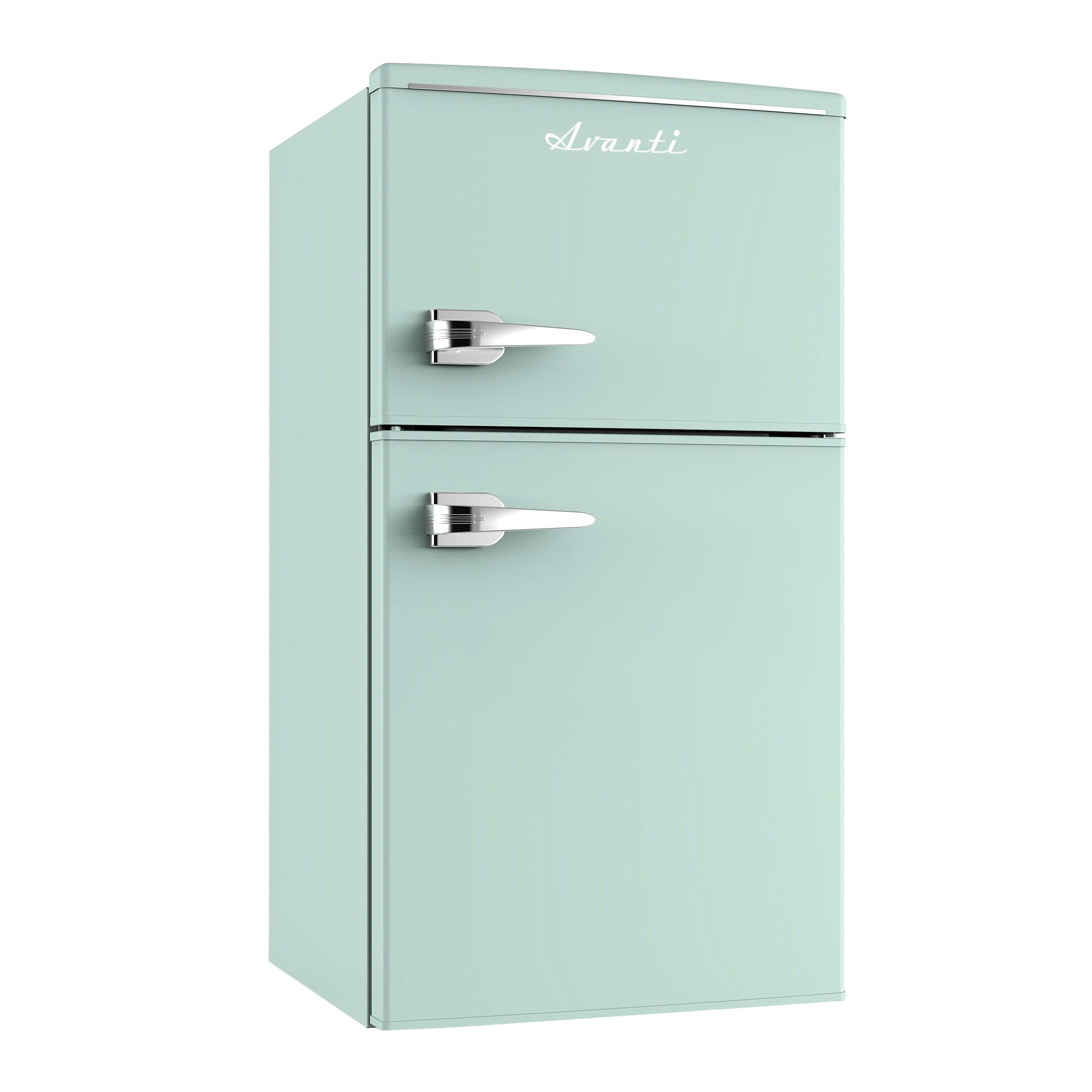 This retro-designed compact fridge offers a cool, colorful, and sophisticated look for any setting. The 3.0 cu. ft. freezer/refrigerator is an ideal fit for your home, dorm, or office, saving space while keeping your favorite foods and beverages within reach. Double-door design allows for easy access to salads, fruits, and snacks throughout your day, and the unit s spacious freezer capacity saves you money as you store frozen foods in bulk. Manual defrost maintains optimal temperature with the turn of a dial. Built-in door shelves and the beverage can dispenser make food storage simple, accommodating 2-liter bottles, six <6> 12 oz. drinks, and assorted condiments. Two adjustable, removable glass shelves allow for easy cleaning and viewing of your food items at-a-glance, and mechanical temperature control allows for easy selection of the unit s correct settings with the turn of a dial. This chicly designed compact fridge complements any setting. Model includes Avanti 1-year manufacturer limited warranty.