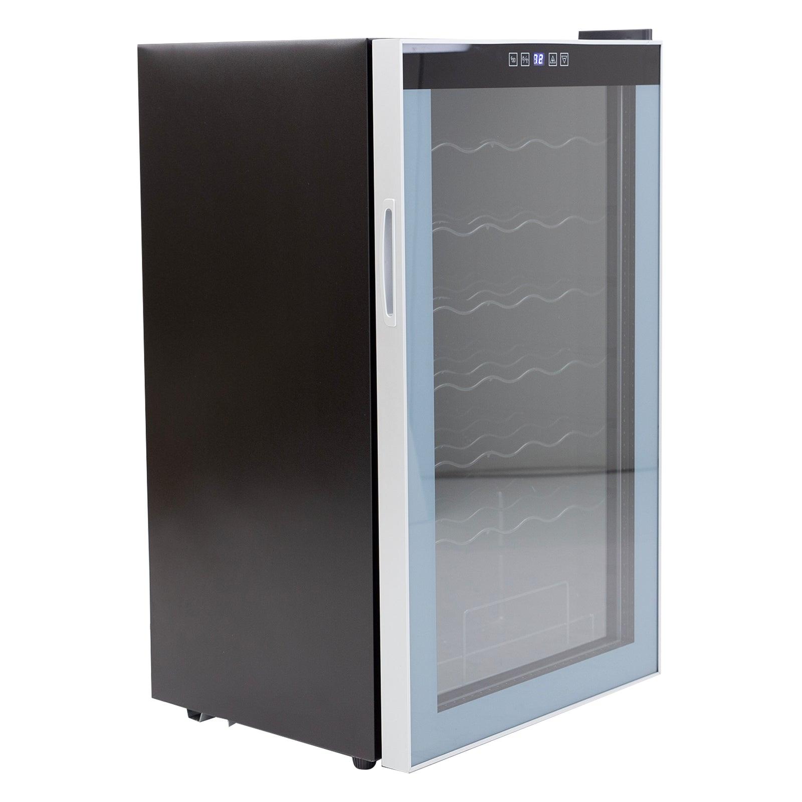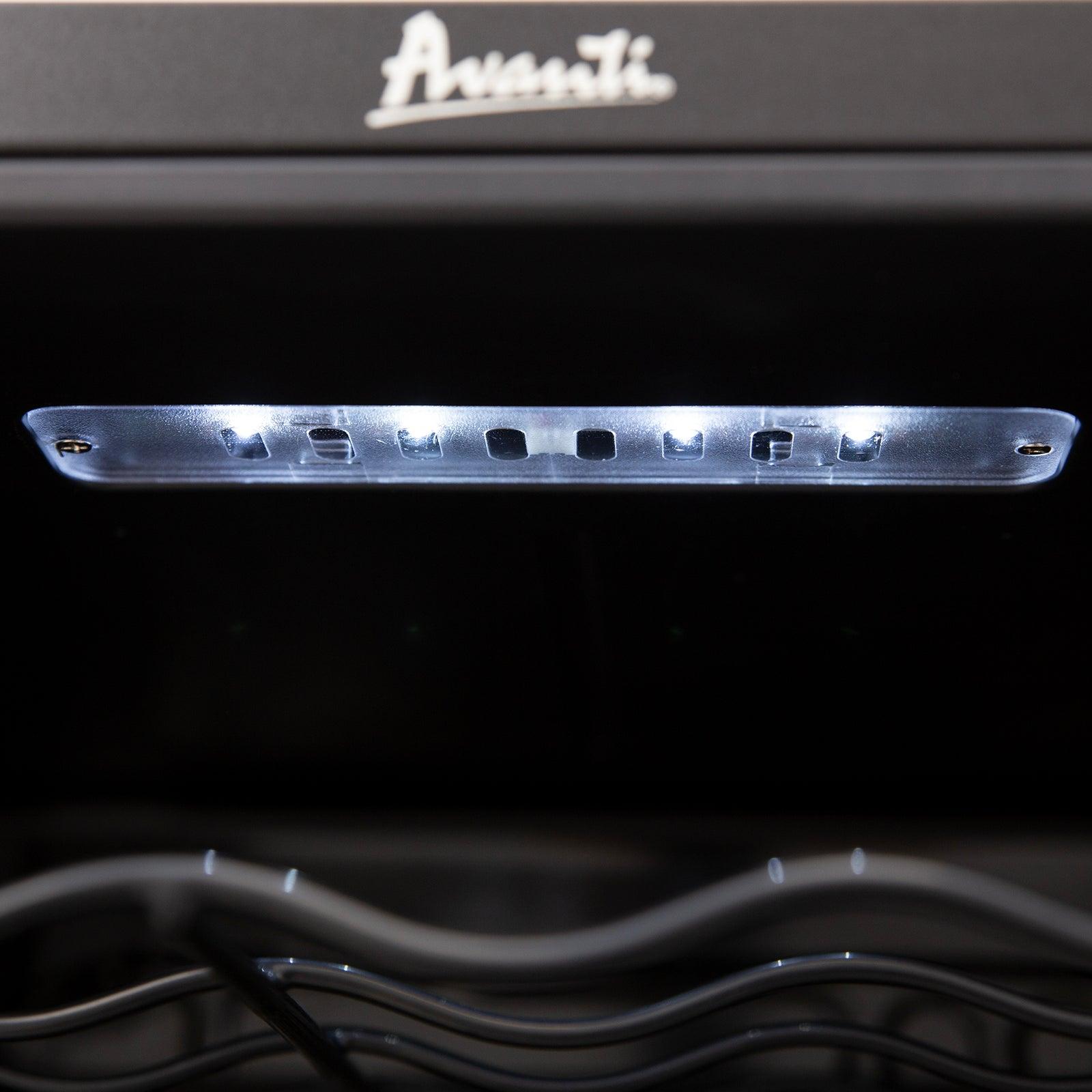 Keep wine perfectly chilled in the 34-bottle capacity wine from Avanti. This wine fridge is ideal for the living room, office, man cave, she-shed, bar, basement or anywhere you want to beautifully store your wine collection. Easily view your wine choices through the glass door. This compact wine cooler features automatic defrost so your wine stays perfectly chilled. Select the right settings at the touch of a button and monitor the temperature /F> with the temperature monitor display.