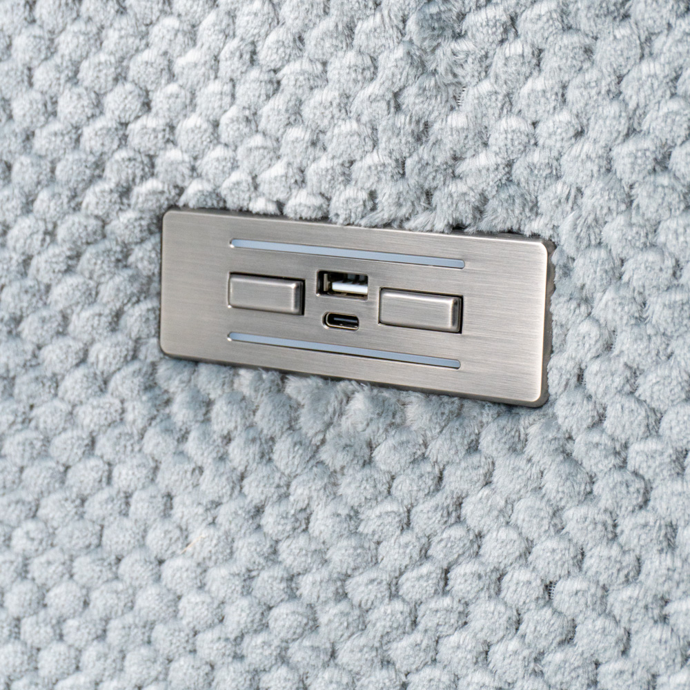 • Built-In Wireless Charging – Conveniently charge your devices without cords while you relax.