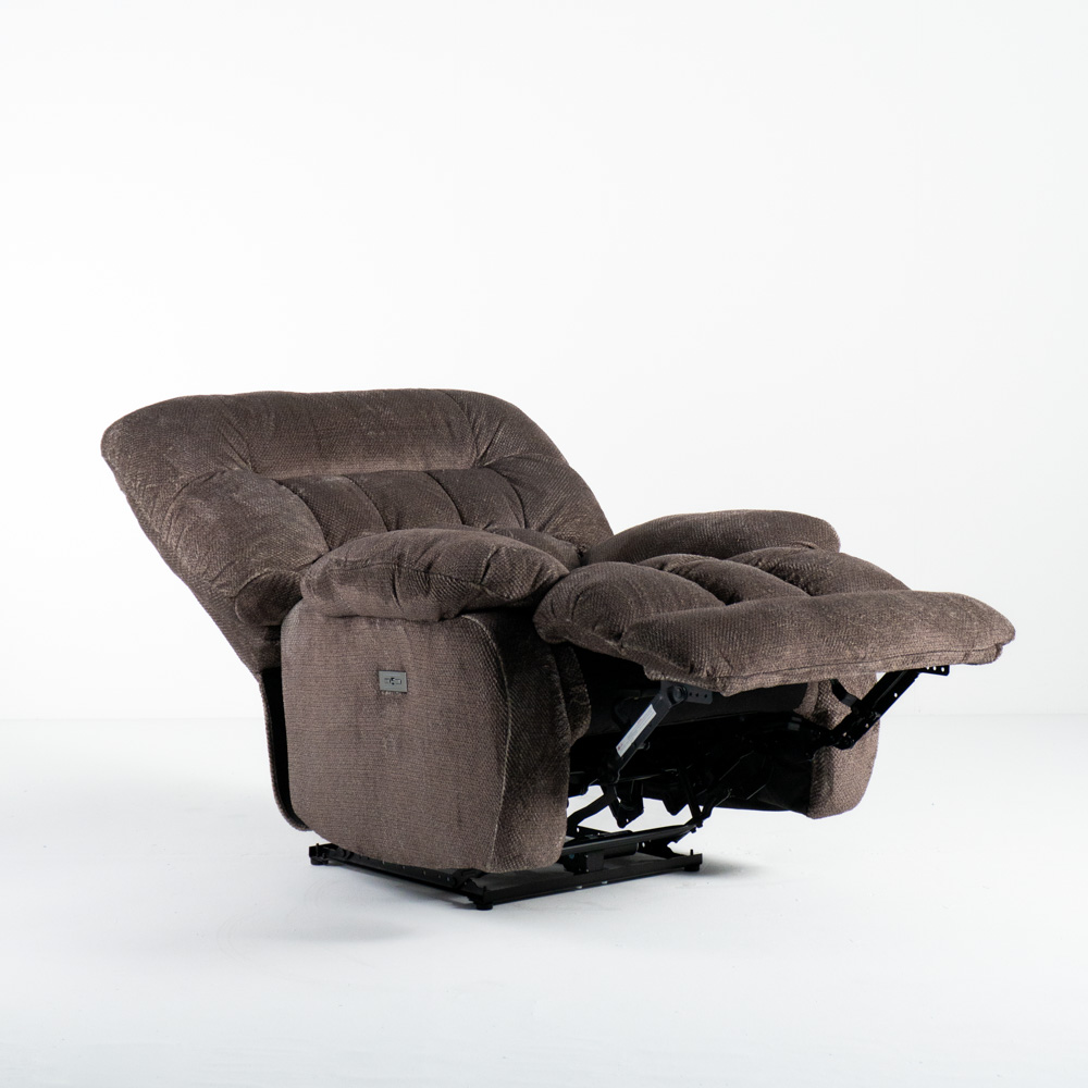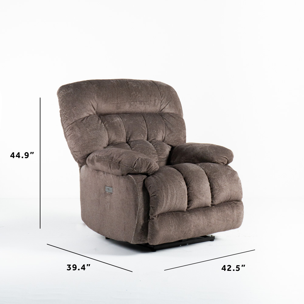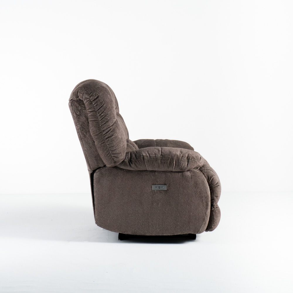 The Bentley Collection Power Recliner in Kirby Brown blends comfort and convenience with modern style. Upholstered in soft, durable performance fabric, it features smooth power reclining at the touch of a button and a built-in wireless charger to keep your devices powered while you relax.