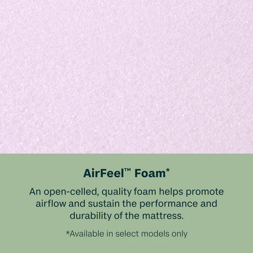 • AirCool® Foam: Promotes a cool, comfortable sleep with a unique channeled design that allows airflow through the mattress.