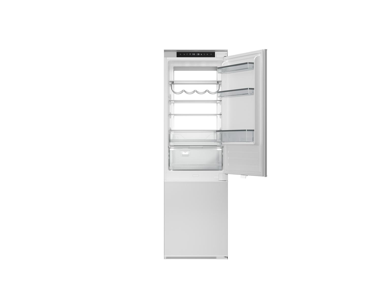 The Total No Frost system offers an automated defrosting evaporator that ensures food always stays fresh. It's equipped with Backlit LED panel illumination to ensures maximum visibility, an Electronic touch interface with user-friendly controls for temperature, speed-freeze and ice making. The panel ready door is reversible for left or right swing installation.
