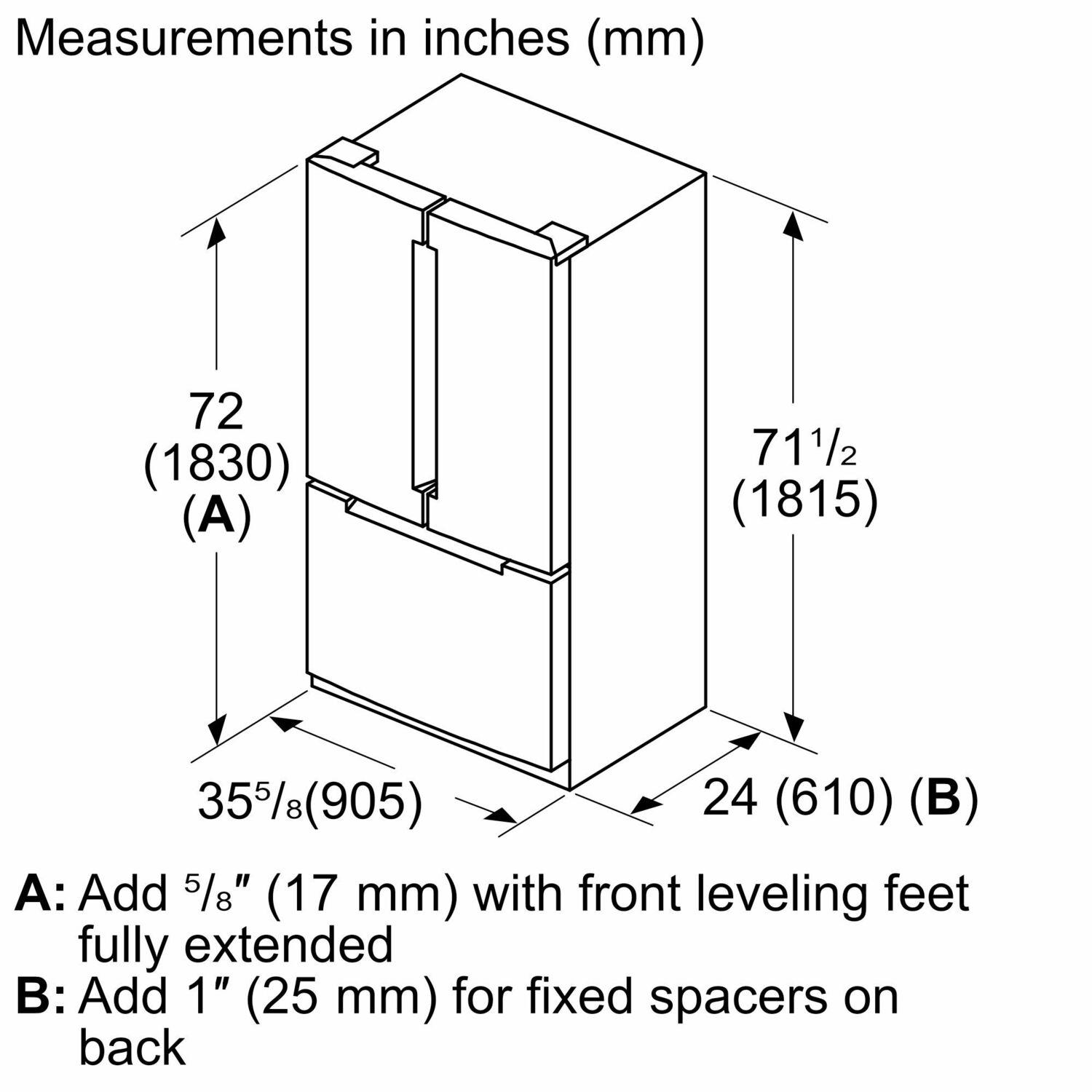 Technical Overview Overall Appliance Dimensions 72 " x 35 5/8 " x 27 13/16 " Required Cutout Size 72 " x 36 " x 25 "