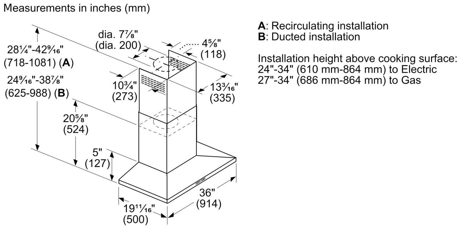 Receive Up To $4000 Rebate500 Series, telescopic cooker hood, 36'', Stainless steel