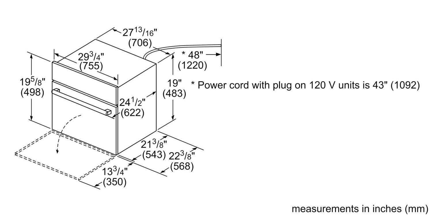 Technical Overview Overall Appliance Dimensions 19 5/8'' x 29 3/4'' x 22 3/8'' Required Cutout Size 19 1/4'' x 28 1/2'' x 22