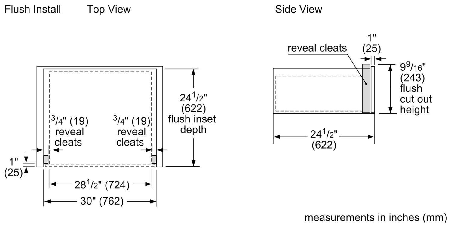 Technical Overview Overall Appliance Dimensions 9 7/16" x 29 3/4'' x 23 1/2'' Required Cutout Size 9 1/4'' x 28 1/2" x 23 1/2''