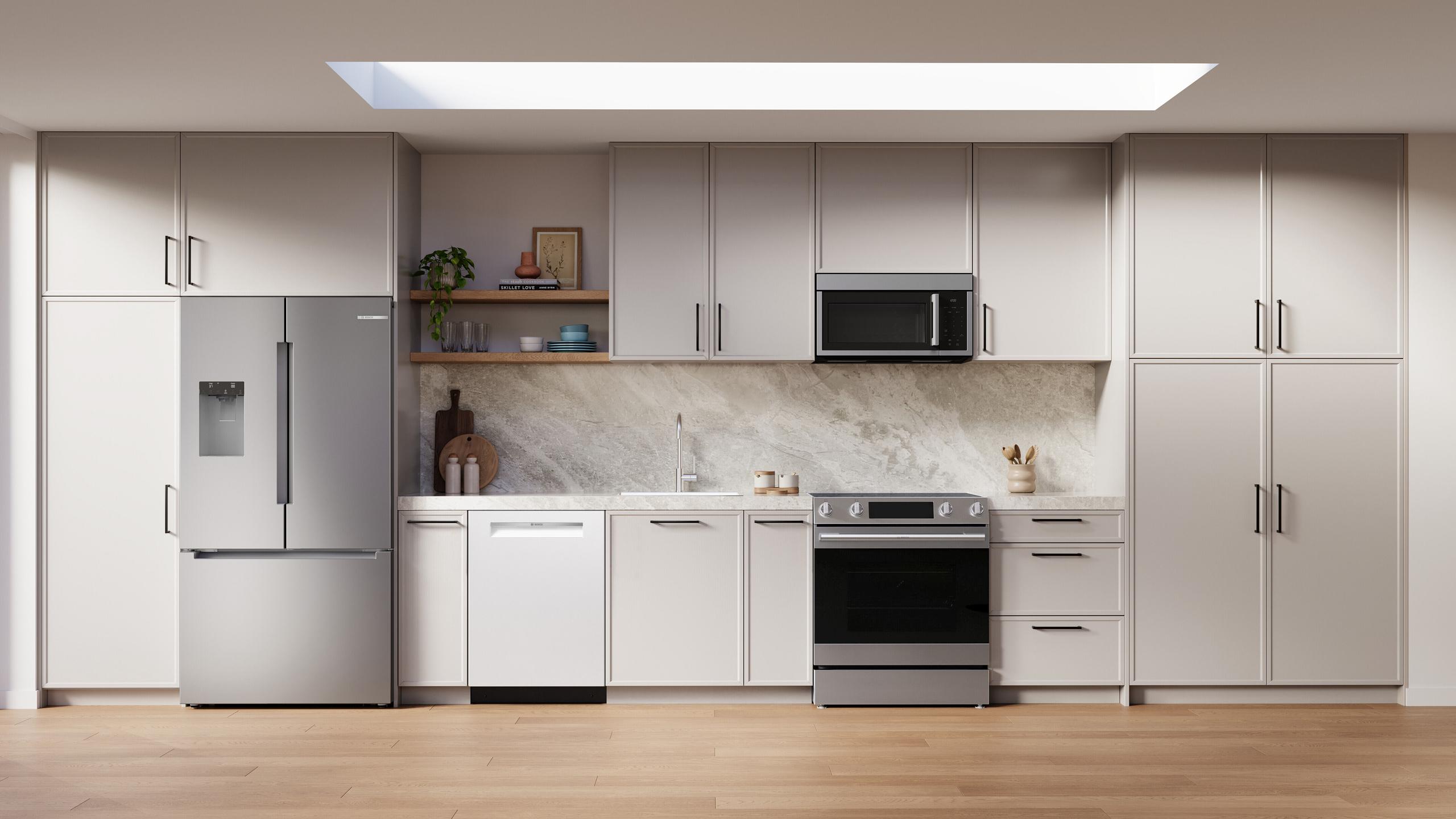 With advanced wash and dry technologies, Bosch dishwashers allow you to skip the need to pre-rinse, saving water. Plus, Bosch dishwashers offer energy efficient cycles and options like Eco Cycle Mode and Half Load Options through Home Connect.