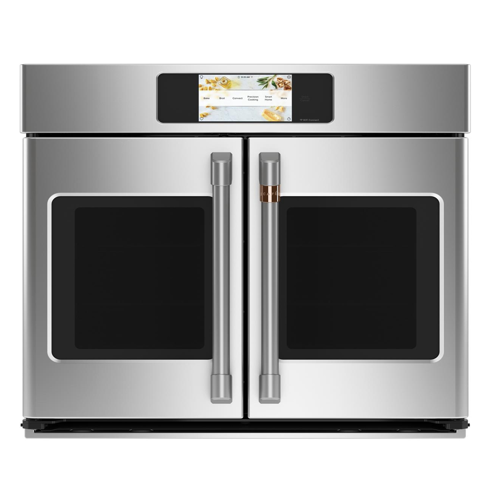 Exude style in every way with a Café French Door Single Wall Oven that lets you customize your finish and handle combination for a professional look all your own. The top oven’s French door design offers an ergonomic, walk-up experience and, since both doors open at once, you can hold your cookie sheet with one hand and open the oven with the other And with Precision Cooking built in to both ovens, your meals are perfectly executed every time.