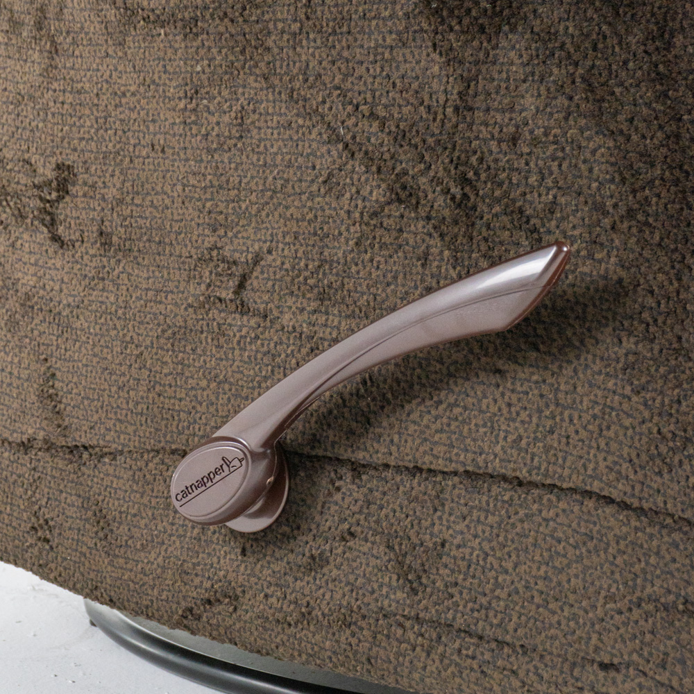 The Catnapper Daly Chaise Swivel Glider Recliner in Chocolate offers handcrafted comfort with heat-tempered steel springs, Comfort-Gel memory foam, and durable Comfort Coil cushions. Its SteelTech Framing and reinforced arms ensure lasting strength, while sleek stitching and refined trims complete the look.