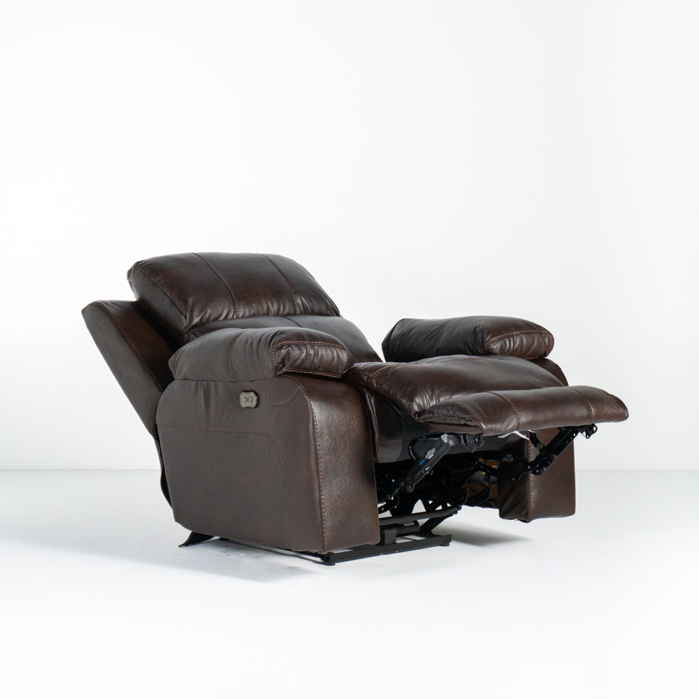 The Positano Power Recliner offers premium comfort with Cocoa Italian leather and sleek contrast stitching. Featuring a European-inspired scoop seat, cool gel-infused memory foam, and individually wrapped coil seating, it delivers exceptional support. The convenient USB port lets you charge devices while you relax. Built with durable steel tech framing and a smooth power recline feature, this chair combines luxury, functionality, and lasting quality—all made in the USA.