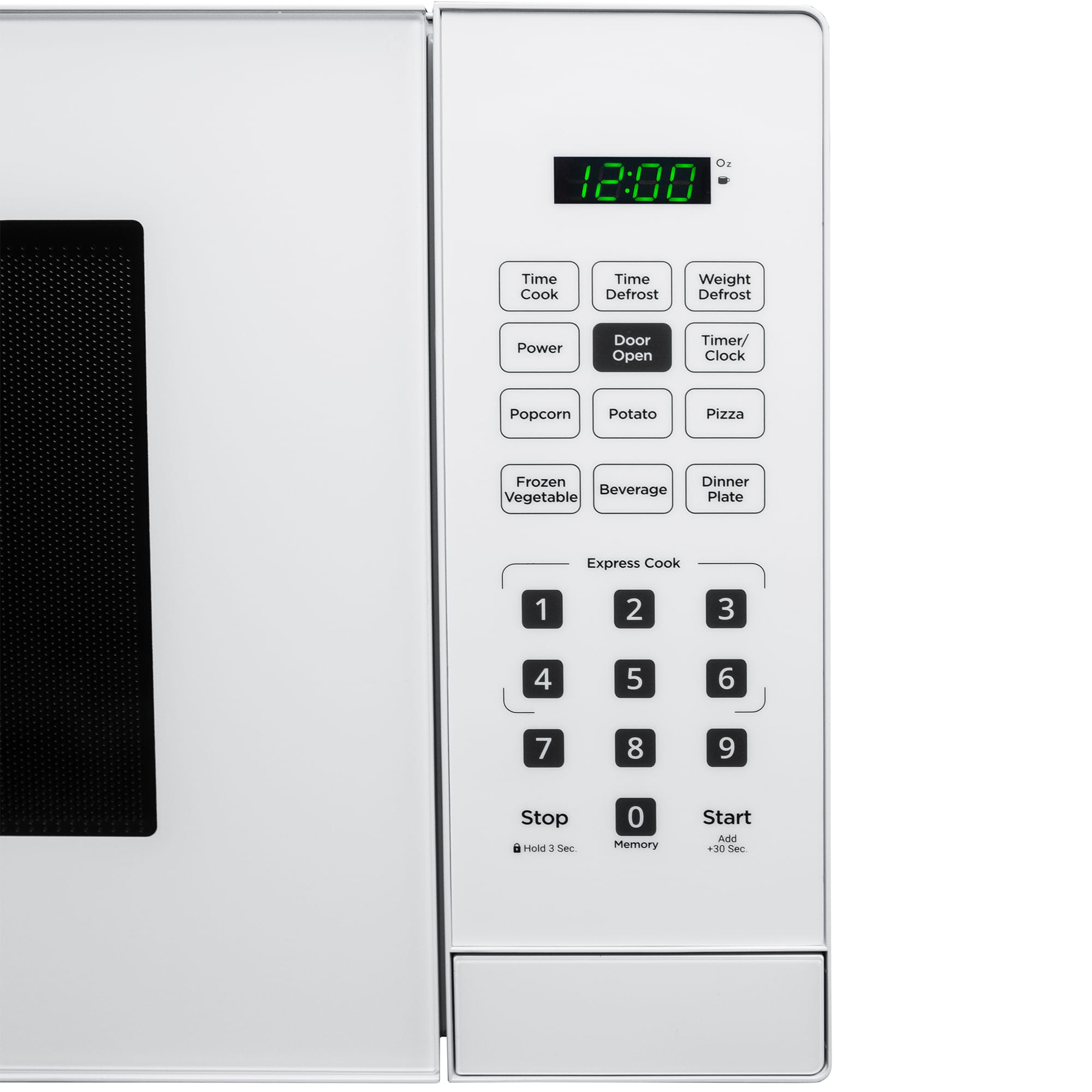 The Danby DBMW1121BWW 1.1 cu. ft. Countertop Microwave in White combines sleek design with powerful performance. Its 1.1 cubic foot capacity and 900 watts of power, along with 10 adjustable power levels, handle various cooking tasks. It features 6 auto cook options for Popcorn, Potato, Pizza, Frozen Vegetables, Beverage, and Dinner Plate, simplifying meal preparation. Express Cook buttons offer immediate cooking from 1 to 6 minutes, and the Add 30 Seconds function extends cooking time easily. Auto Defrost Options allow defrosting by time or weight for optimal results. The Time Cook feature provides precise control by manually setting cooking time. For safety, the Child/Control Lock Out option locks the control panel with a 3-second press of the STOP button and includes a 2-step door safety lock. A 12-month warranty on parts and labor with carry-in service offers peace of mind.