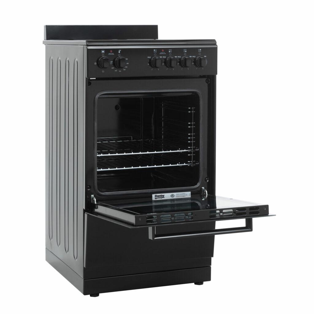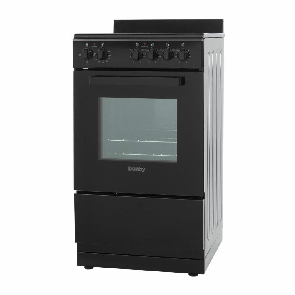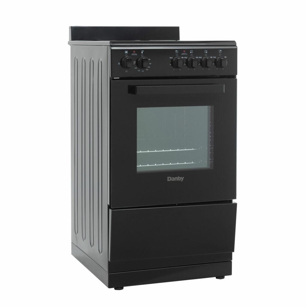 Elevate your kitchen with the Danby 20 Wide Electric Range in Black, a perfect blend of compact design and powerful performance for small spaces. Featuring 4 radiant cooktop elements, this range provides the versatility to handle a variety of cooking needs. The two adjustable oven racks with multiple positions offer optimal cooking space, allowing you to prepare multiple dishes at once with ease. With a smooth, easy-to-clean cooktop and an element indicator light, maintaining a tidy kitchen is effortless. Experience peace of mind with knobs featuring a push-and-turn safety mechanism, ensuring secure and easy activation. Convenient storage is provided by the slide-out drawer, keeping your pots and pans organized and within reach. Experience style, efficiency, and versatility in one appliance, as the Danby range maximizes your kitchens potential for a seamless and enjoyable cooking experience.