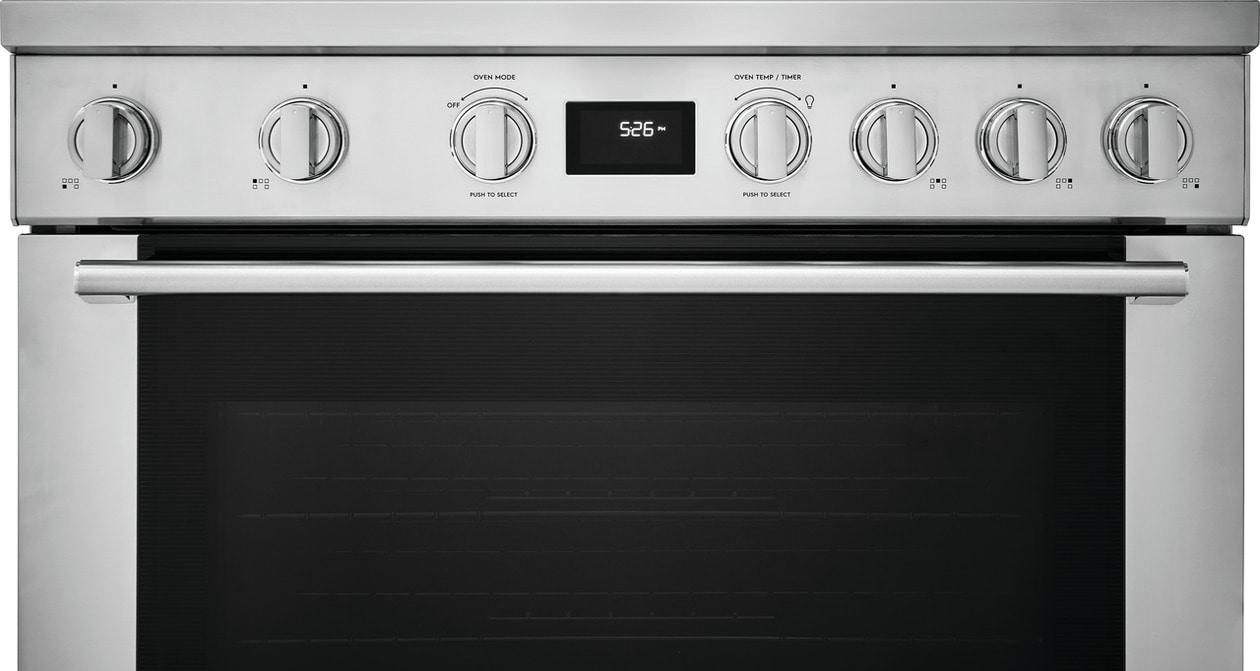 • Edge-to-edge front controls with sturdy knobs and the Electrolux signature pinstriped glass lend to the sleek design that make this range a focal point of your kitchen