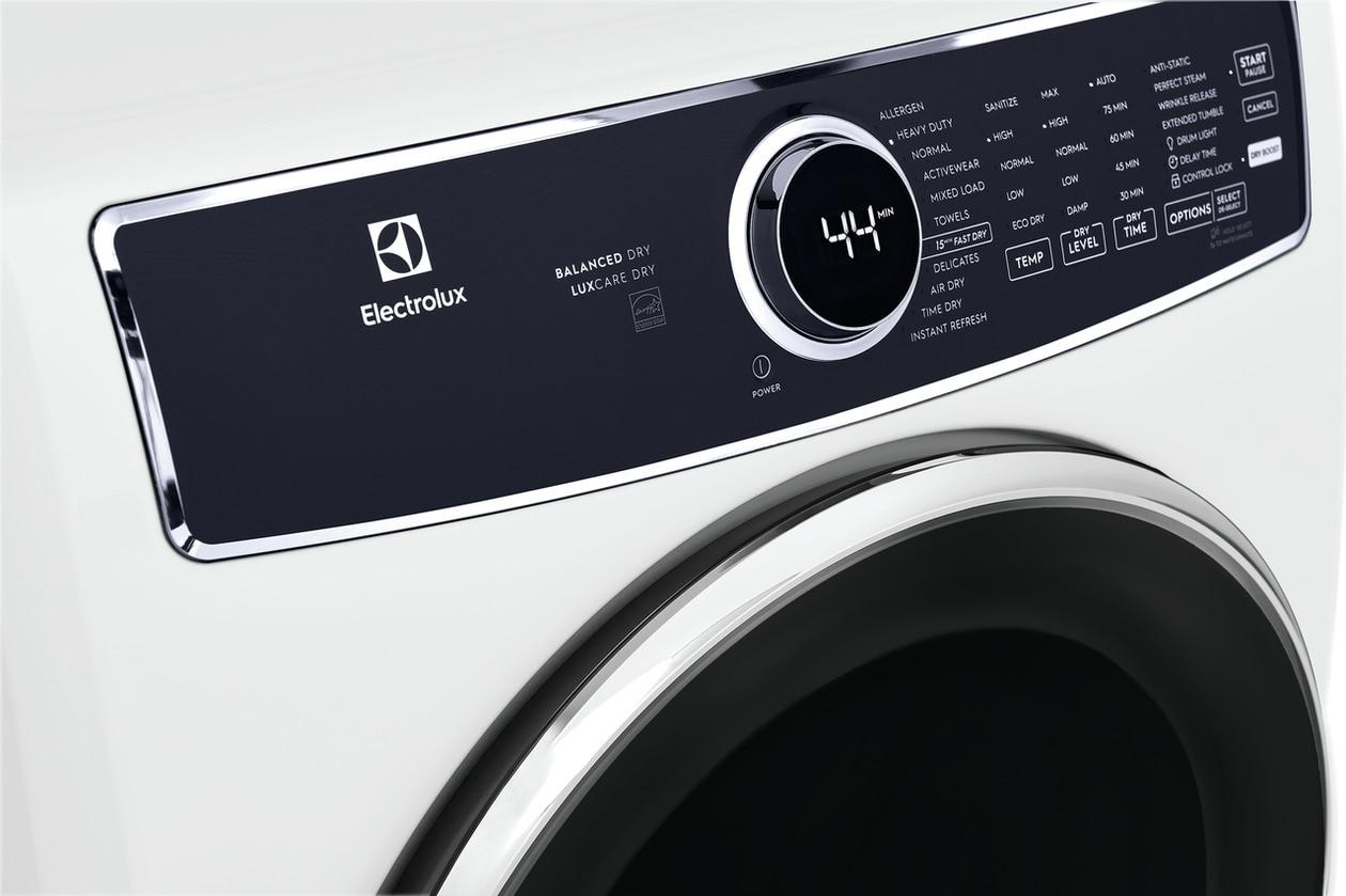 The Electrolux front load electric dryer with Balanced Dry™ technology prevents temperature spikes to keep fabrics cooler throughout the dry cycle. LuxCare® Dry uses an advanced moisture sensor to prevent over or under-drying.