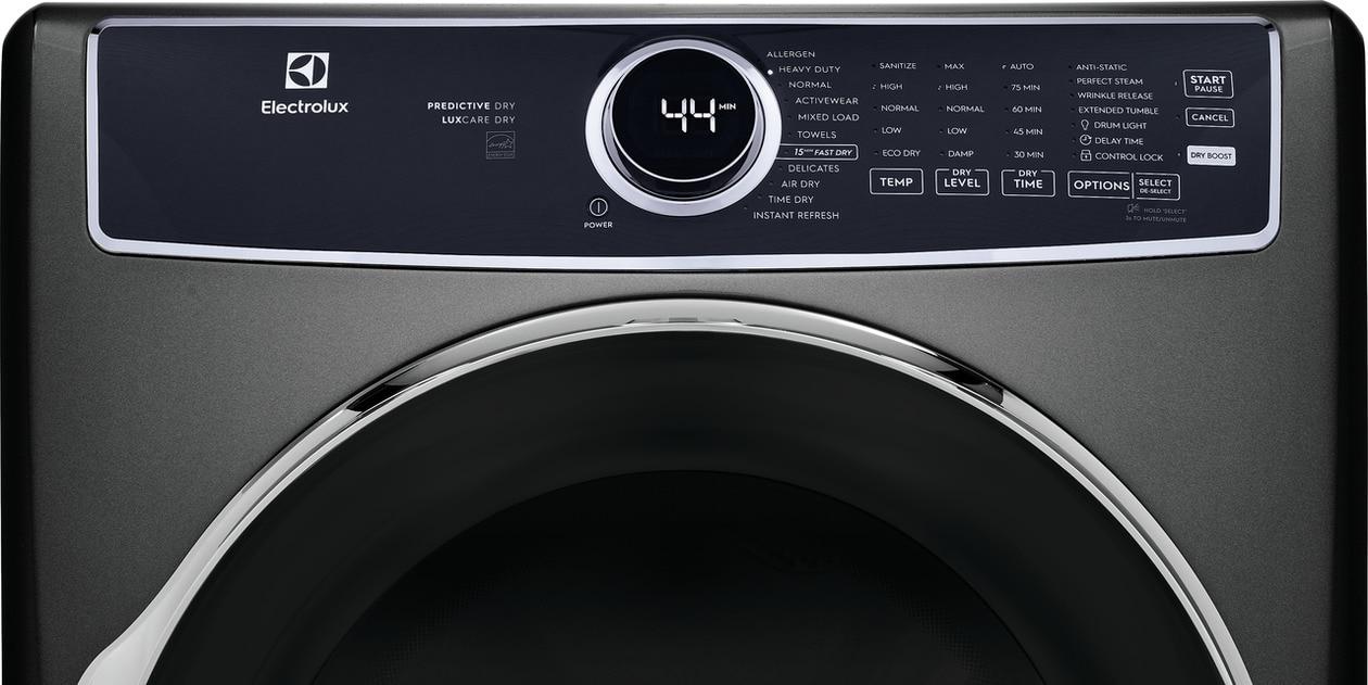 The Electrolux front load gas dryer with LuxCare® Dry uses an advanced moisture sensor to prevent over or under-drying. The Instant Refresh cycle allows you to remove wrinkles and refresh clothing in just 10 minutes.