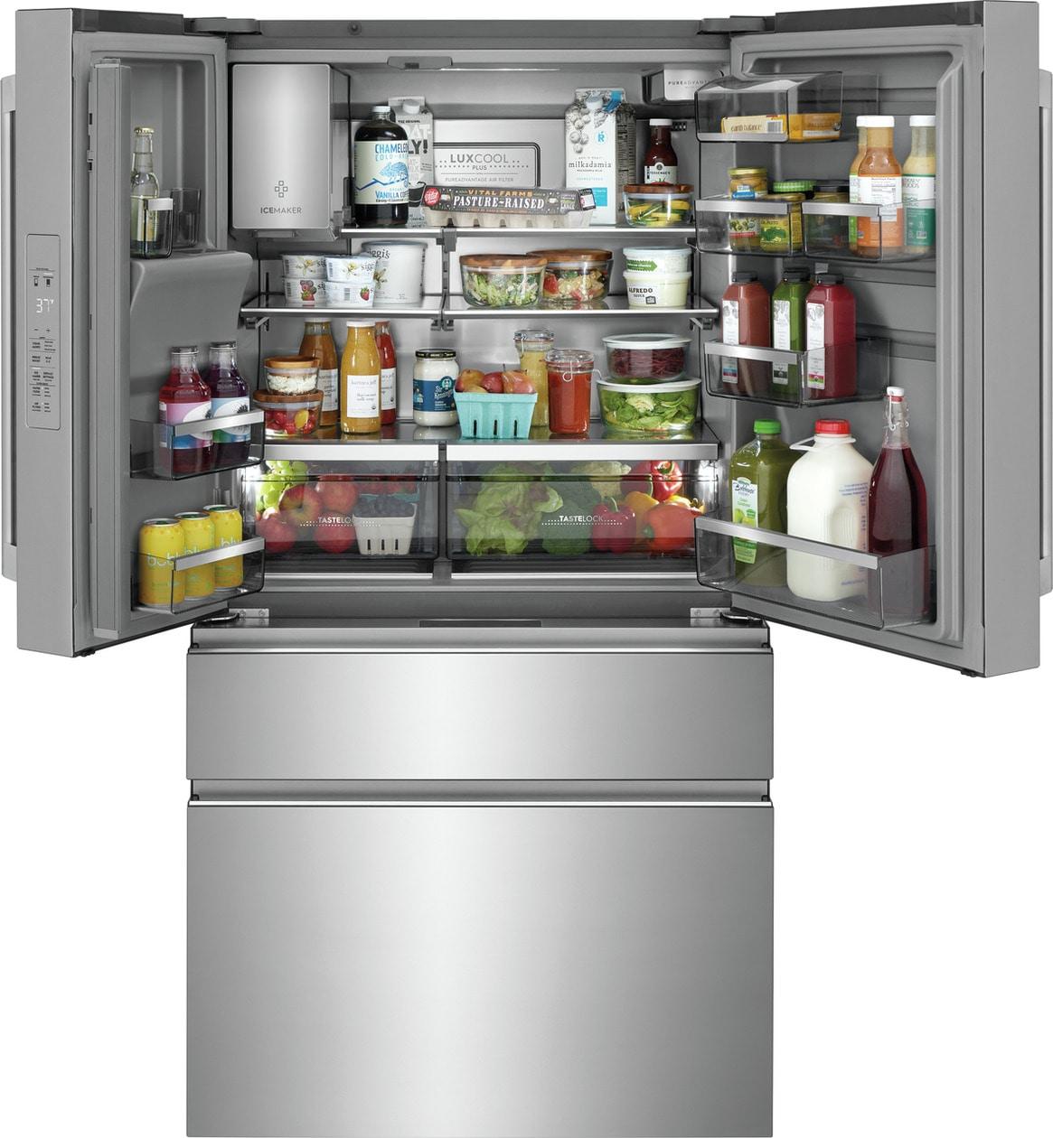 The Electrolux Four-Door French Door Refrigerator offers the TempAdapt Drawer which allows you to store all your favorites for entertaining - from cheese to wine to sorbet - at the perfect serving temperature. And it helps keep produce tasting fresh like nature intended with TasteLock Crispers.