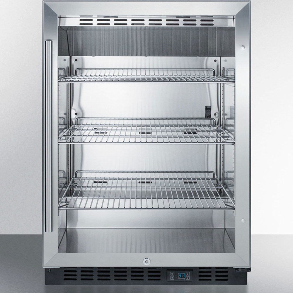 • Glass Door Display – Double pane tempered glass door with stainless trim provides a clear view of stored contents.