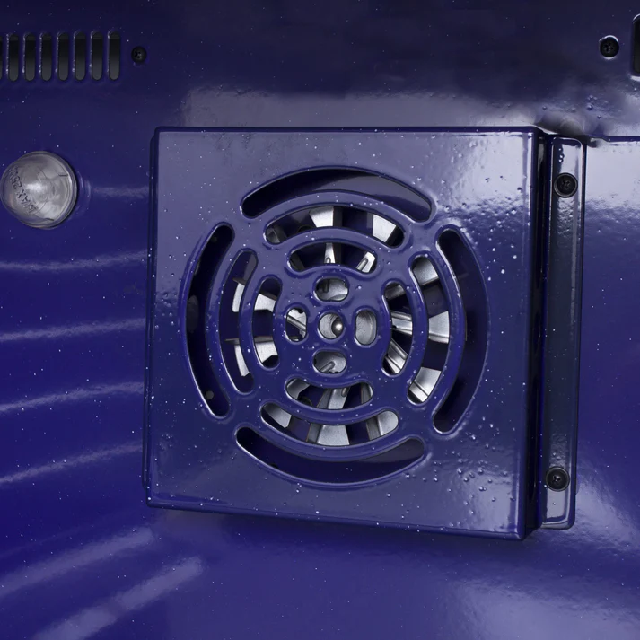 Speckled blue enamel oven of 4.32 Cu.Ft with convection fan & 30,000 BTU Total Broil and Bake output
