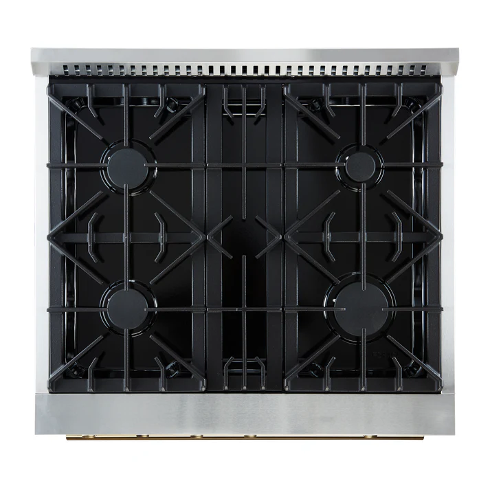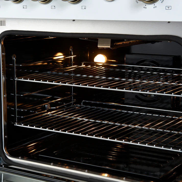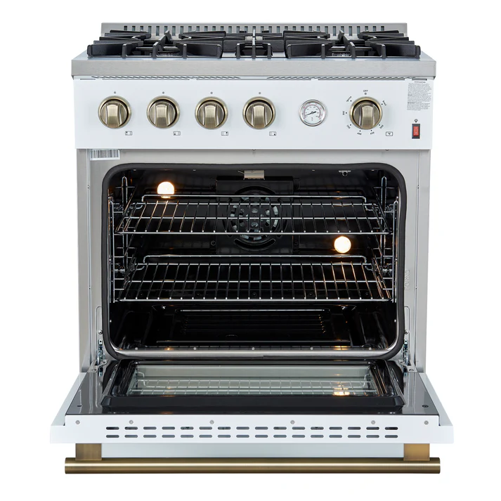30" Gas Range White & Antique Brass Design, 4 Burners 37,000 BTU, 4.32 cu.ft. Convection Oven