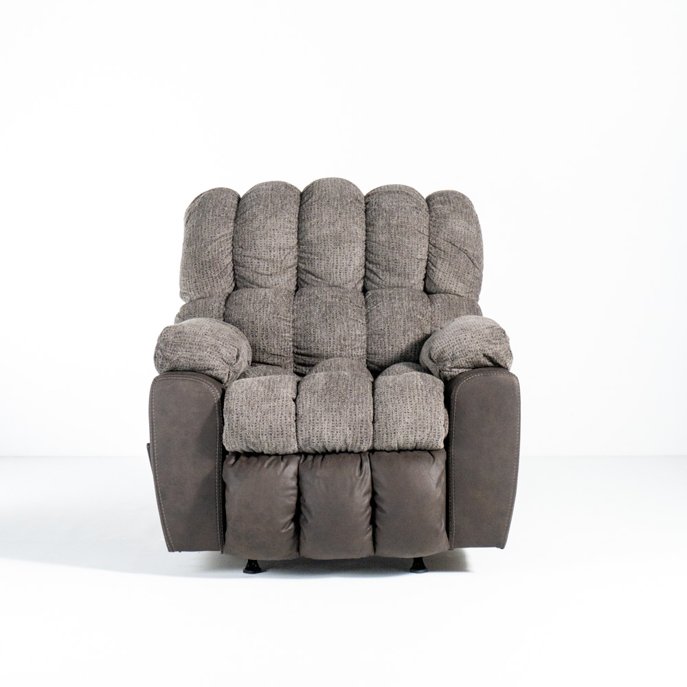 Transform your living space with the ultimate comfort of the Westwood Rocker Recliner in Atlantic Mink. Designed with plush, overstuffed arms and a supportive back, this recliner feels like sitting on a cloud. The soft yet durable polyester fabric adds a touch of luxury, while the American-made quality ensures it’s built to last. Perfect for unwinding after a long day, this recliner is a cozy and stylish addition to your home. Assembly required.