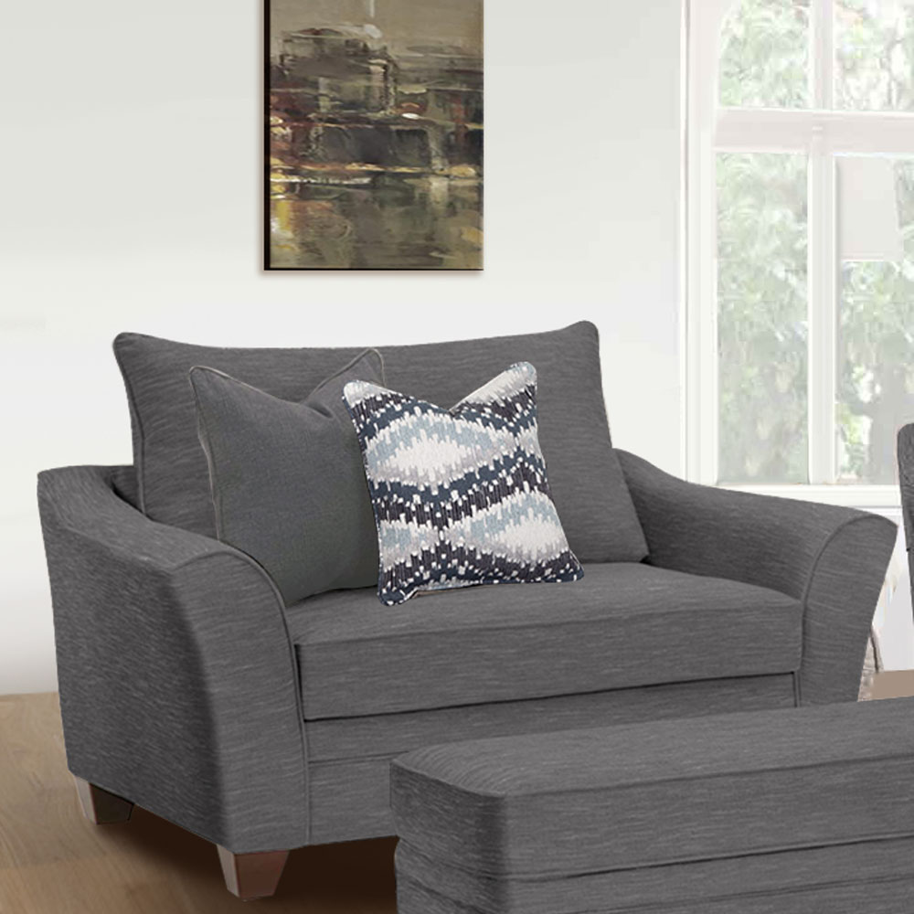The Tiffin stationary group is upholstered in a charcoal performance fabric with flair arm styling.
