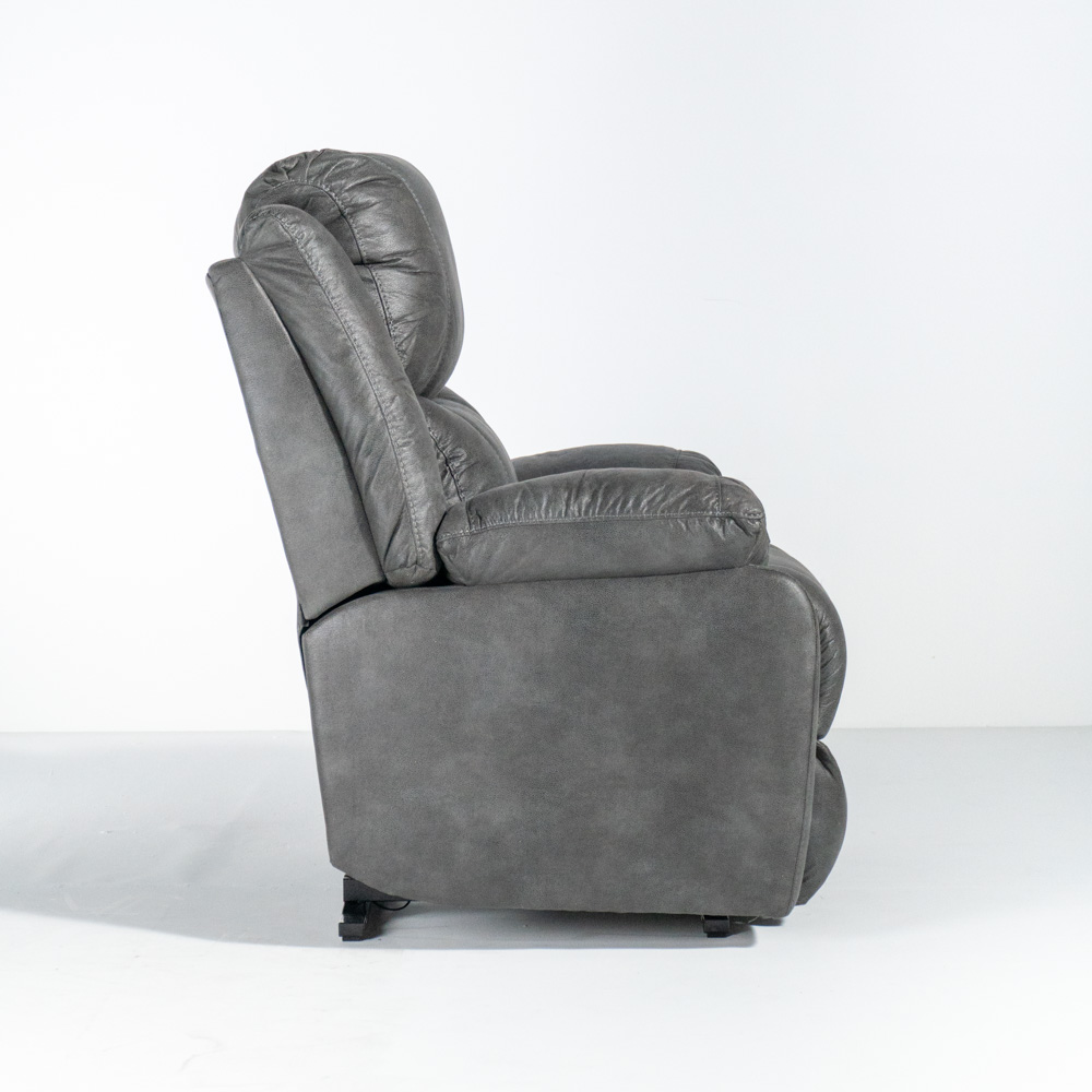 The Caesar Fabric Power Recliner in Westview Slate offers exceptional comfort with a 49-inch height, 24-inch seat width, and the ability to fully recline to the length of a king-sized bed. It features 100% gel-blended foam and Copperfuse foam for a luxurious seating experience, plus an extended easy-release handle. With a 500 lbs weight capacity and durable polyester fabric, this oversized rocker recliner combines comfort and style, all made in the USA.
