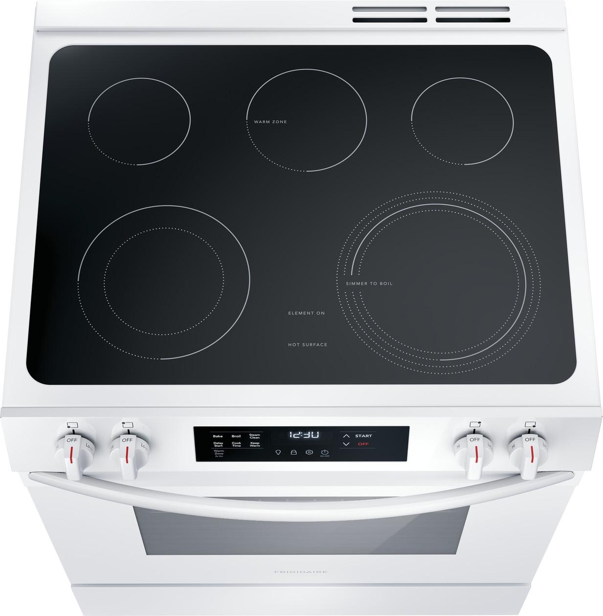 The Frigidaire 30" Front Control Electric Range with the EvenTemp cooktop element delivers consistent results every time, because it reduces hot and cold spots in your pan. Plus, enjoy easier cleanup with our Steam Clean cycle that provides a quick 30-minute oven cleaning that's chemical-free, odor-free and fast.