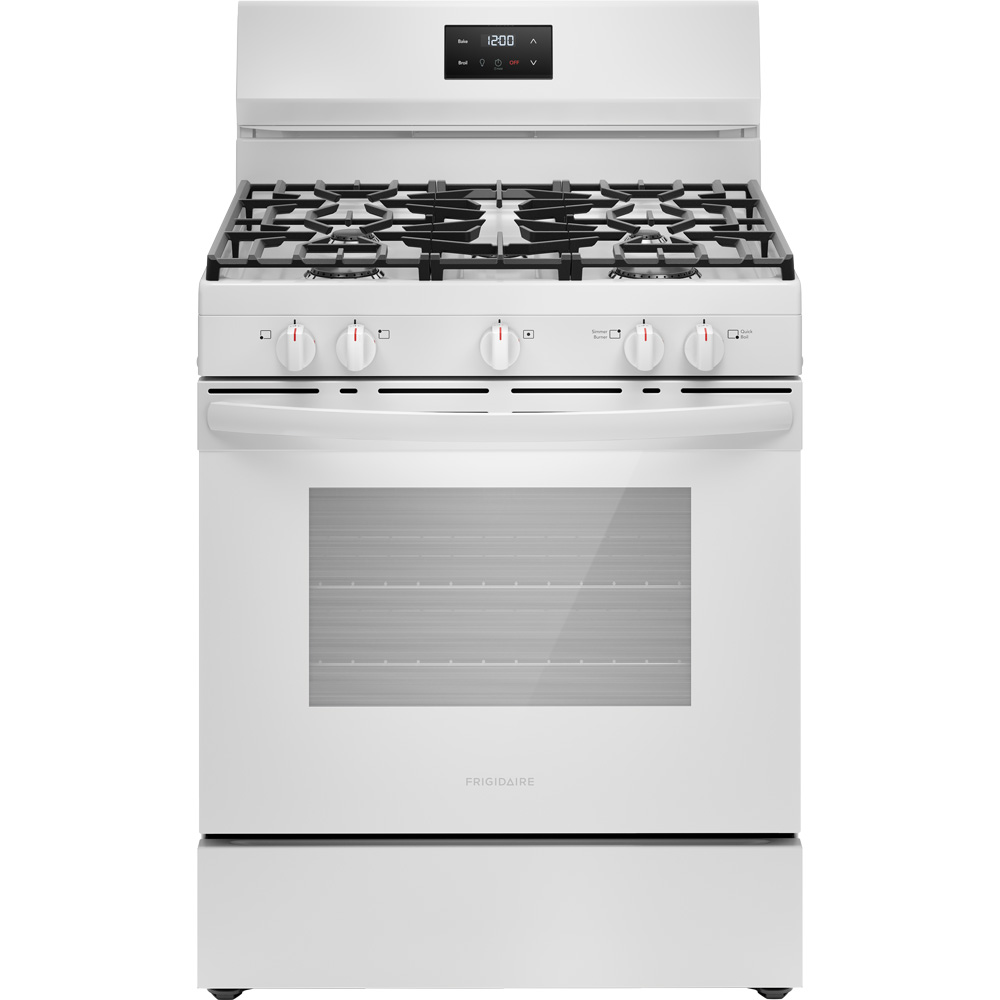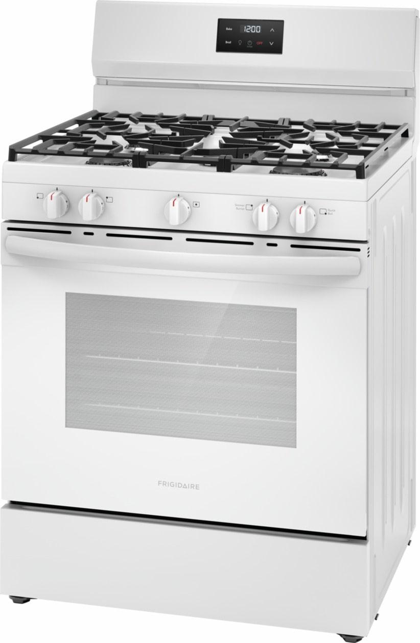 The Frigidaire 30" Gas Range allows you to get to mealtime faster with the powerful 18,000 BTU Quick Boil burner. Experience the ultimate in cooktop flexibility with our five-burner cooktop, designed to handle all of your cooking needs. Enjoy consistent, even baking results with our Even Baking Technology. Plus, cook more at once with our large 5.1 cu. ft. capacity oven.