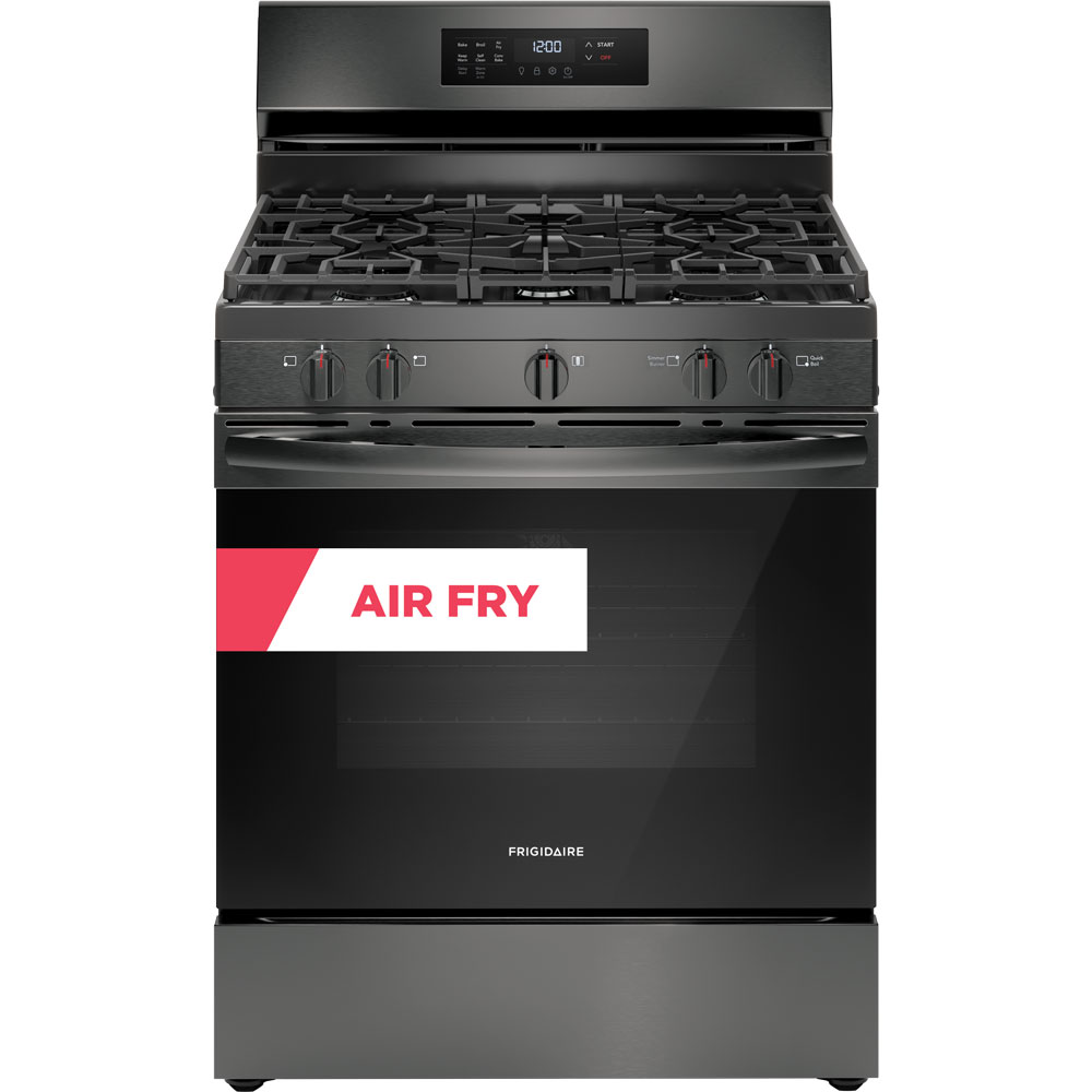 The Frigidaire 30" Gas Range with Air Fry allows you to get that same great taste and crispy texture of deep frying with little to no oil, right in your oven. Plus, this cooktop features five burners to satisfy all of your cooking needs, including a 5,000-BTU simmer burner for delicate foods, a 10,000-BTU center oval burner perfect for griddles or larger pans, and our powerful 18K BTU Quick Boil Burner, so you can get meals on the table, faster.