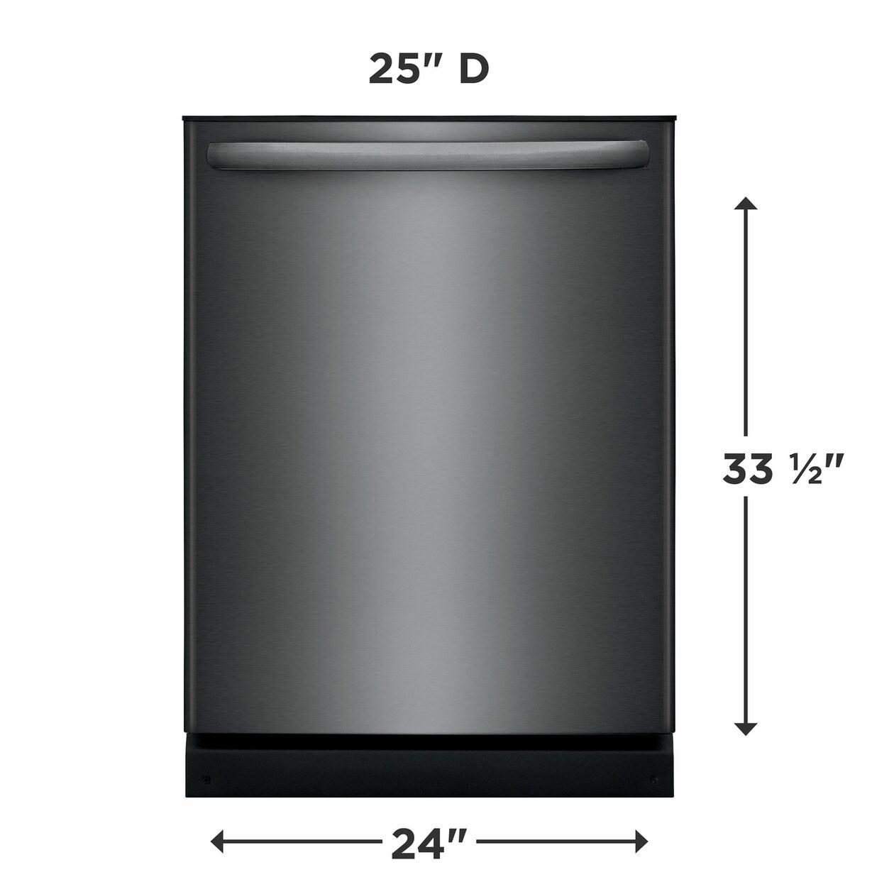 The Frigidaire 24 in. built-in dishwasher offers triple the cleaning power giving your dishes a more effective clean with our three spray arms that achieve better water coverage. Plus, enjoy an enhanced dry with MaxDry, which delivers better results reducing the need for towel drying. This quiet dishwasher <52 dba> also includes DishSense Sensor Technology, a sanitize option and is Energy Star certified.