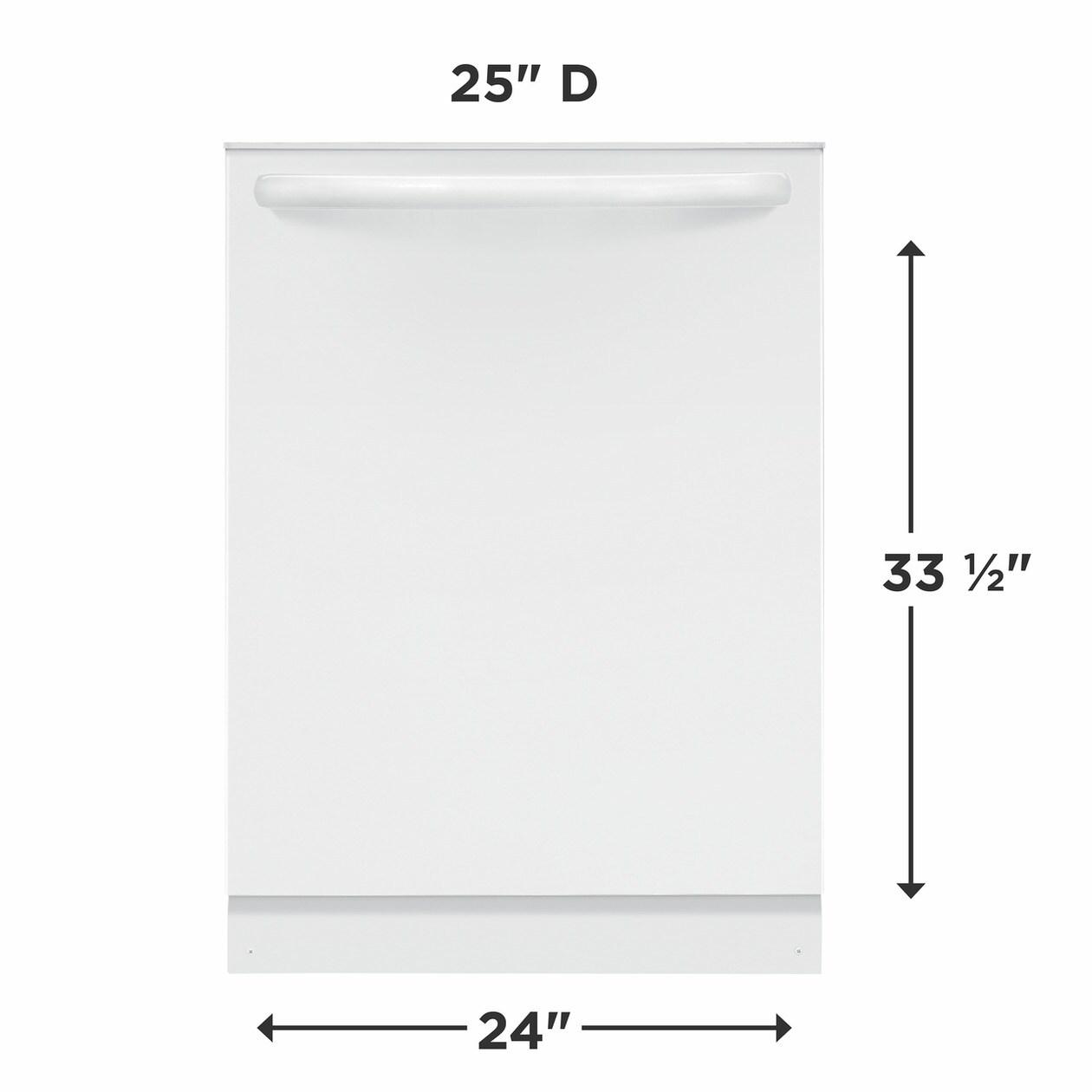 The Frigidaire 24 in. built-in dishwasher offers triple the cleaning power giving your dishes a more effective clean with our three spray arms that achieve better water coverage. Plus, enjoy an enhanced dry with MaxDry, which delivers better results reducing the need for towel drying. This quiet dishwasher <52 dBA> also includes DishSense Sensor Technology, a sanitize option and is Energy Star certified.