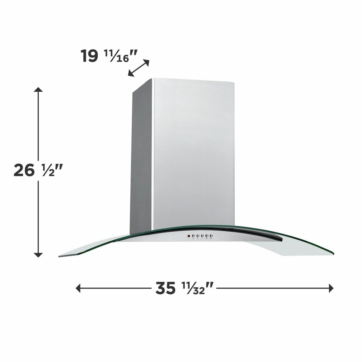 The Frigidaire 36" glass canopy wall-mounted hood moves air quietly and efficiently - up to 400 cu. ft. of air per minute.