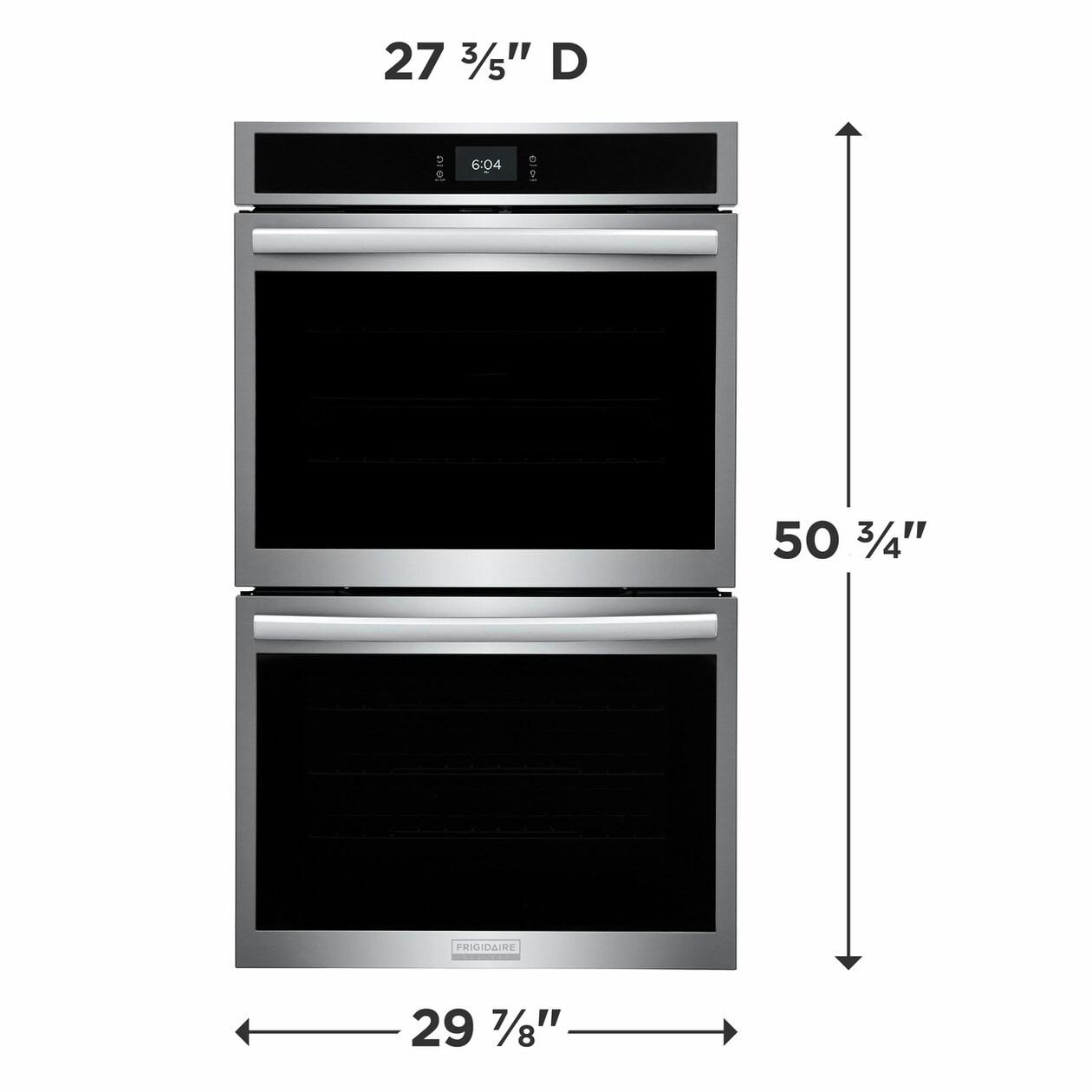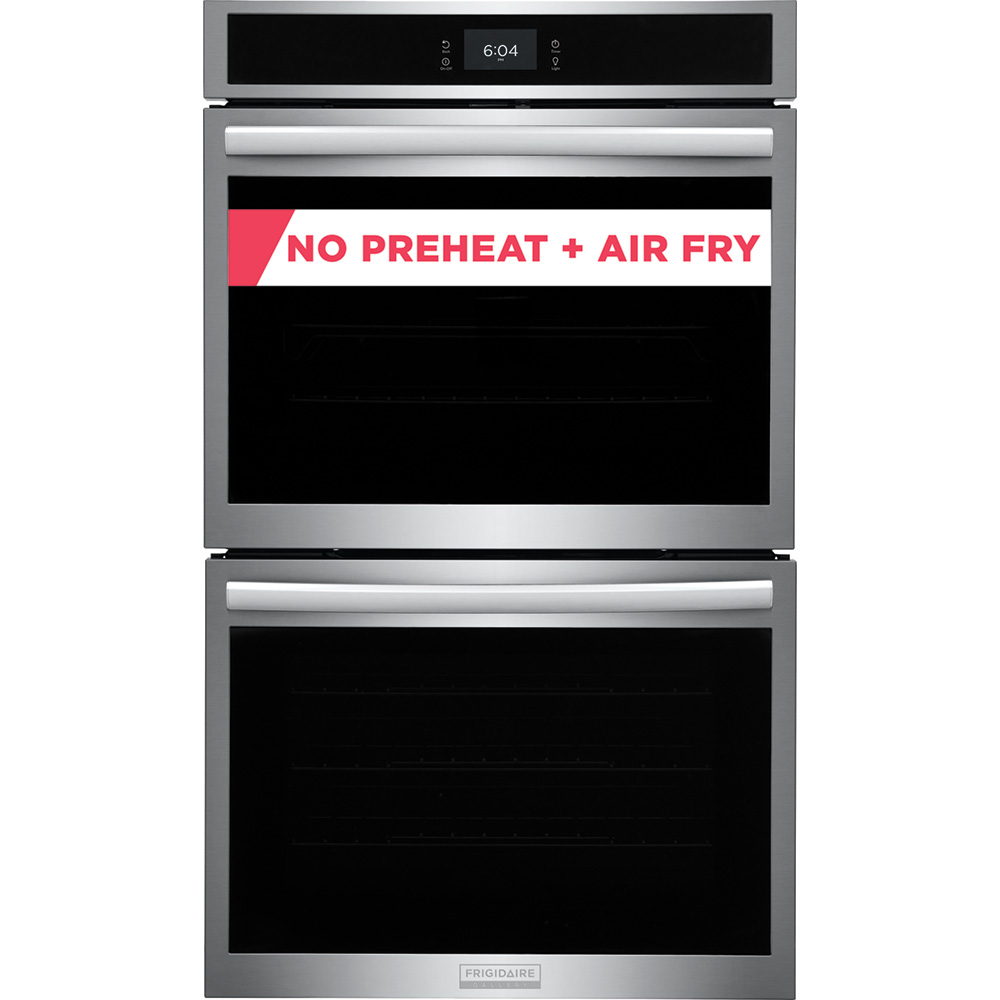 The Frigidaire Gallery 30" Double Wall Oven with Total Convection, features our most powerful and advanced convection system, which enables cooking modes like No Preheat, Air Fry, Slow Cook, Steam Bake, Steam Roast, Air Sous Vide, Convection Roast, Convection Bake, Bread Proof and more! Also includes a convenient temperature probe, a premium touch screen digital control panel and our fingerprint resistant, Smudge-Proof Stainless Steel finish.