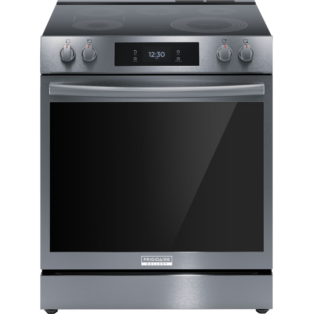 The Frigidaire Gallery 30" Front Control Electric Range with Total Convection, features our most powerful and advanced convection system, which enables over 15 cooking modes like No Preheat, Air Fry, Slow Cook, Steam Bake, Steam Roast, Air Sous Vide, Convection Roast, Convection Bake, Bread Proof and more! The flexible five element cooktop includes a powerful 3,200 Watt EvenTemp element and a convenient bridge element - designed to handle all of your cooking needs. This range also features backlit LED knobs, our premium touch screen digital control panel and our fingerprint resistant, Smudge-Proof Stainless Steel finish.