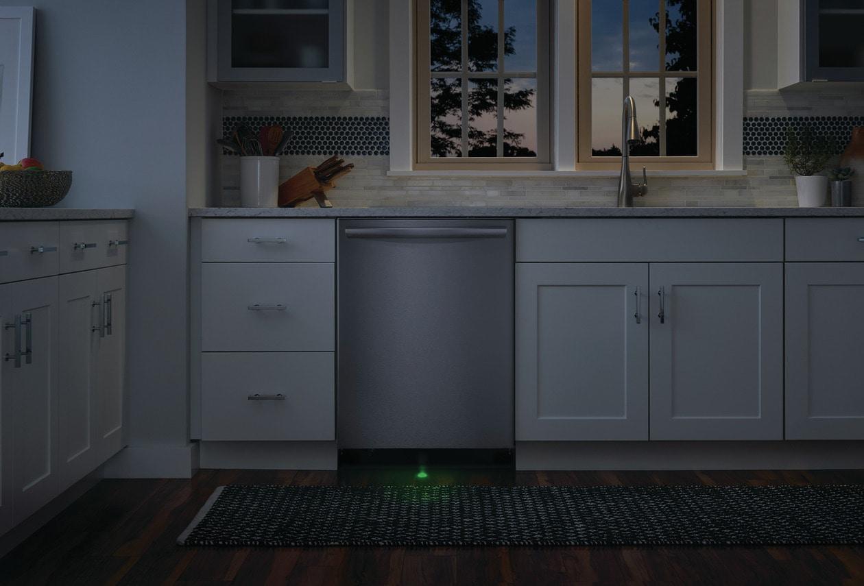 • Convenient LED floor light shows cycle status- blue when your dishes are washing and white when they are clean.