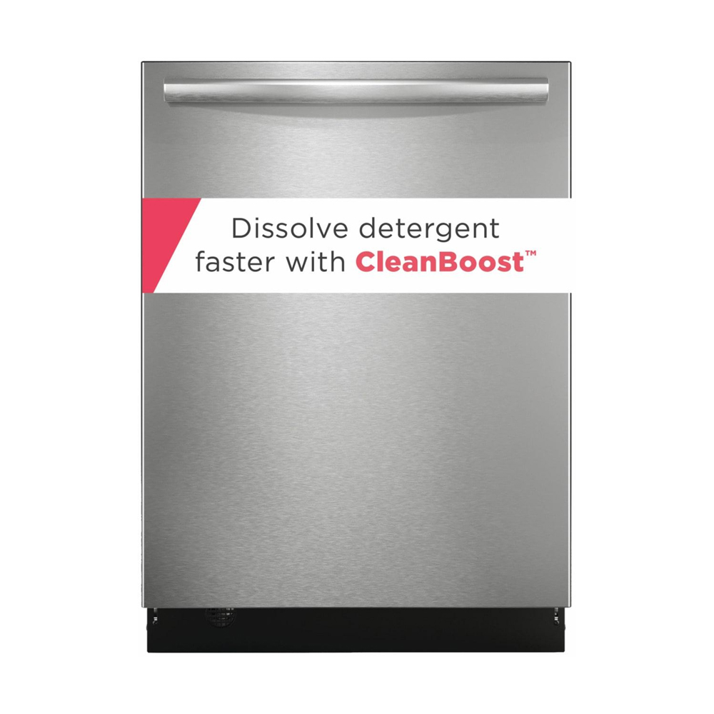 Frigidaire Gallery 24" Stainless Steel Tub Built-In Dishwasher with CleanBoost™ Technology maximizes the power of your detergent by premixing water and detergent before it hits your dishes, helping remove hard-to-clean and baked-on foods.