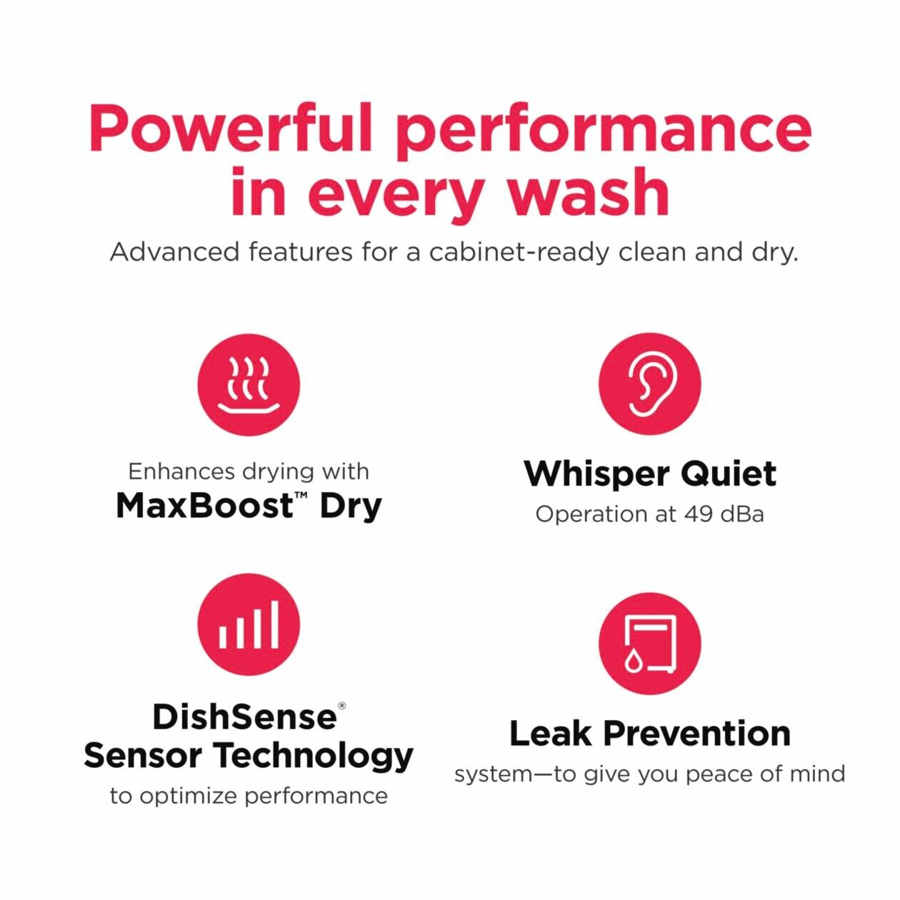 The Frigidaire Gallery 24" Stainless Steel Tub Built-In Dishwasher with CleanBoost Technology maximizes the power of your detergent by premixing it with water before it touches your dishes delivering powerful cleaning results and removing tough baked-on foods. This ultra-quiet <45 dba> dishwasher also features MaxBoost dry and an Adaptive Quick Wash that adjusts resources and performance based on the soil level to deliver the fastest and cleanest quick wash in the industry.