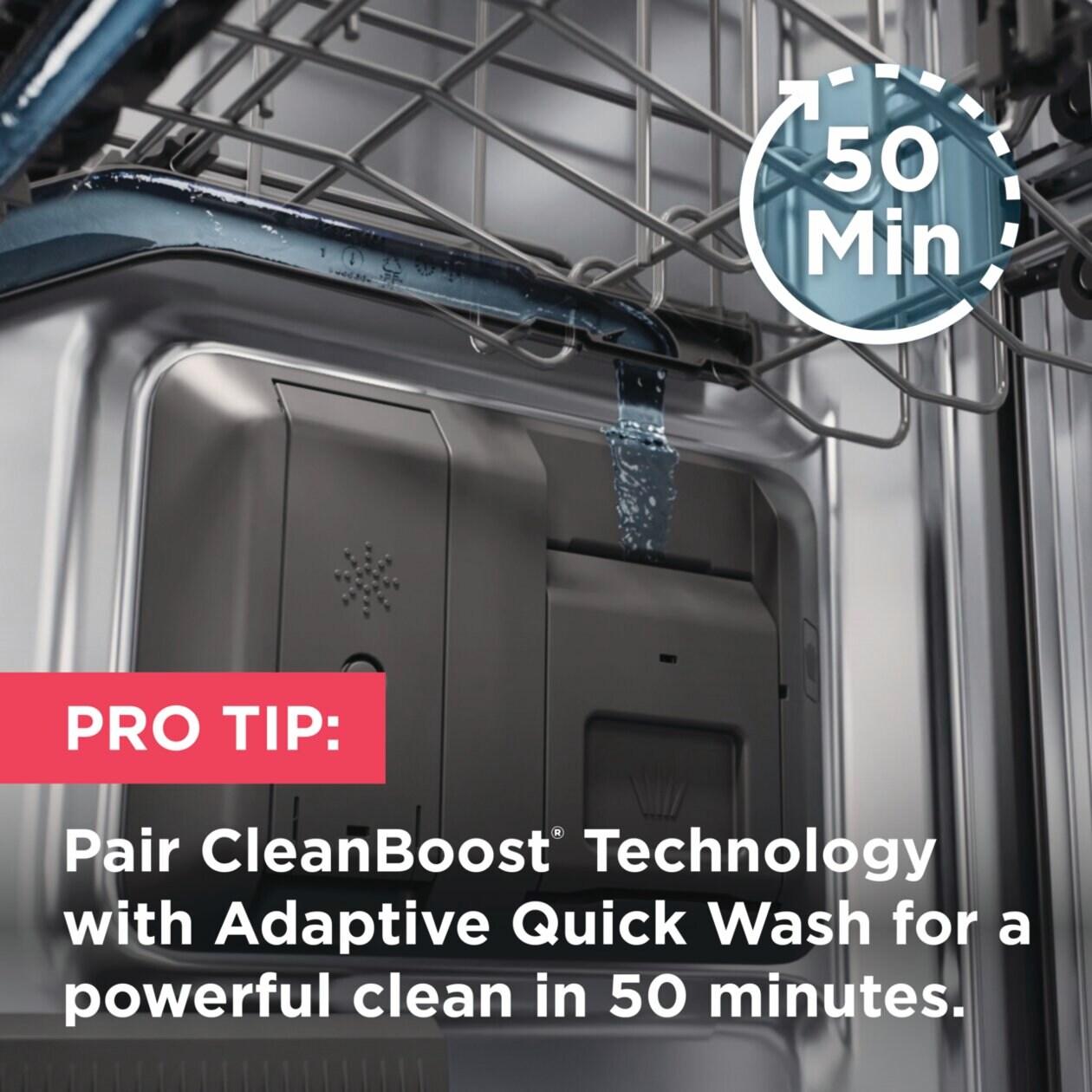 The Adaptive Quick Wash Cycle adjusts cleaning performance and resources based on soil level for the cleanest and fastest quick wash in its class* * AHAM-DW-1-2020 tested against leading competitors with suggested retail pricing of $799-$999