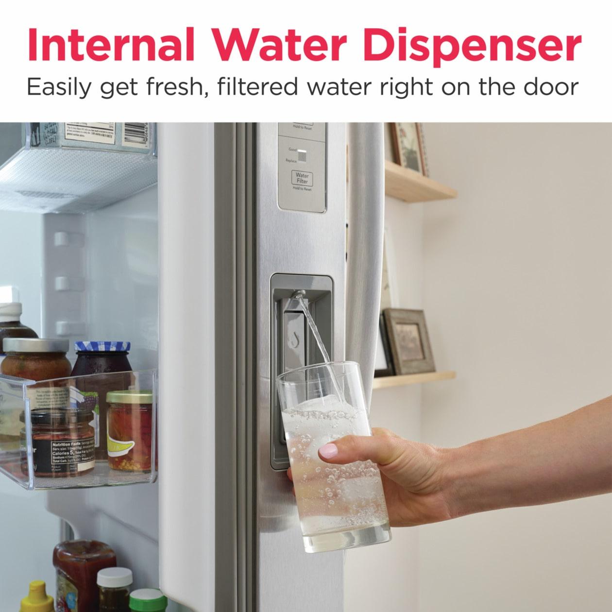 This Frigidaire Gallery 36" Side-by-side refrigerator offers a minimalist clean exterior with an internal water dispenser. Features our advanced CrispSeal Plus Crisper that keeps produce fresh with a seal that blocks out dry air, plus an added filter reduces the gas that causes produce to ripen faster. It also features our EvenTemp Cooling System which keeps your food fresh by reacting quickly to temperature fluctuations and constantly circulates cold air throughout the fresh food and freezer compartments, ensuring a consistent cool from top to bottom.