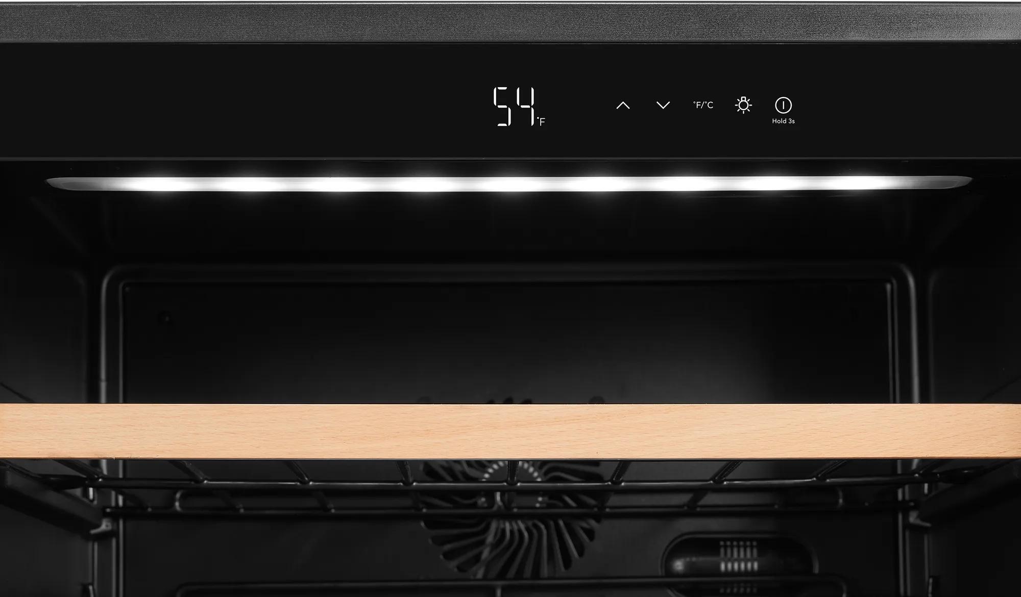 Set temperature anywhere between 41-64 degrees and the wine cooler will hold it precisely.