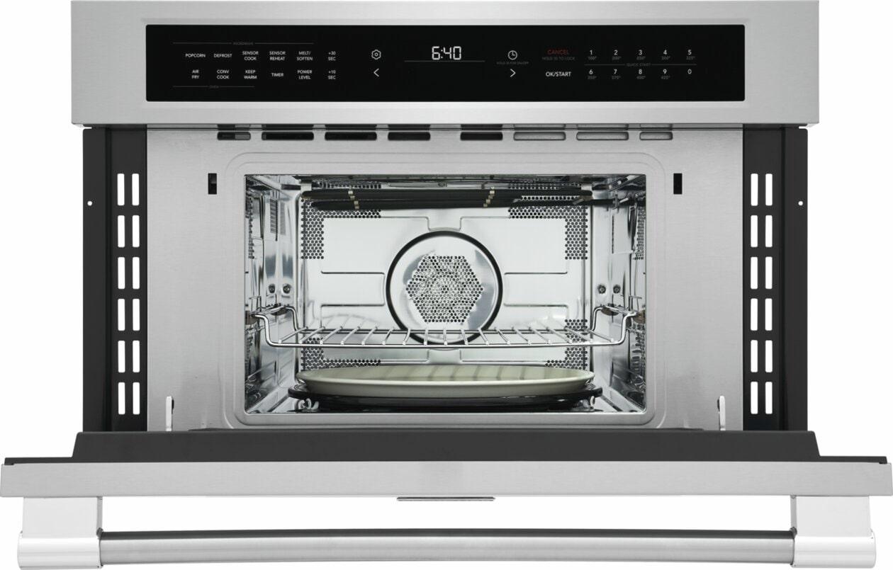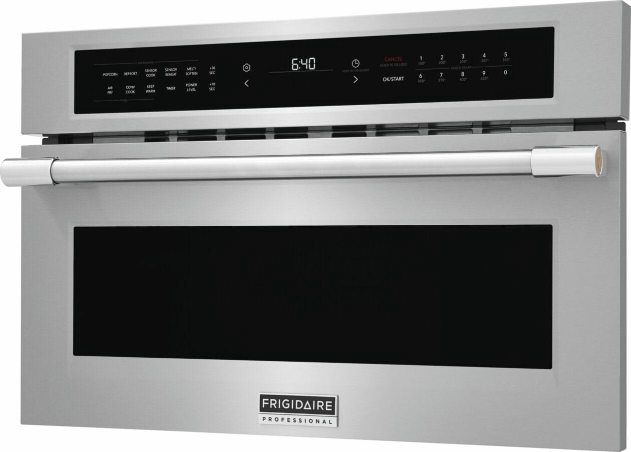 30" Built-In Microwave30" Built-In Microwave30" Built-In Microwave30" Built-In Microwave30" Built-In Microwave30" Built-In Microwave30" Built-In MicrowaveThe Frigidaire Professional Built In Drop Down Door Microwave with Air Fry allows you to make crispy delicious meals with little to no oil, along with a powerful, 1700-Watt convection system for even heat distribution and perfectly cooked dishes. Sensor Cooking options provide effortless temperature control, while bright LED interior lighting makes it easier to see what's cooking inside of the microwave. Finished in Smudge-Proof Stainless Steel, it offers a sleek, modern look that resists fingerprints.