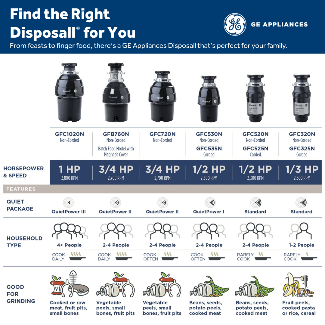 This 25-ounce grind chamber has plenty of capacity so you can grind more types of food, which reduces food waste and helps you keep your kitchen clean. This is the recommended food disposal for a family of 1-2 people.