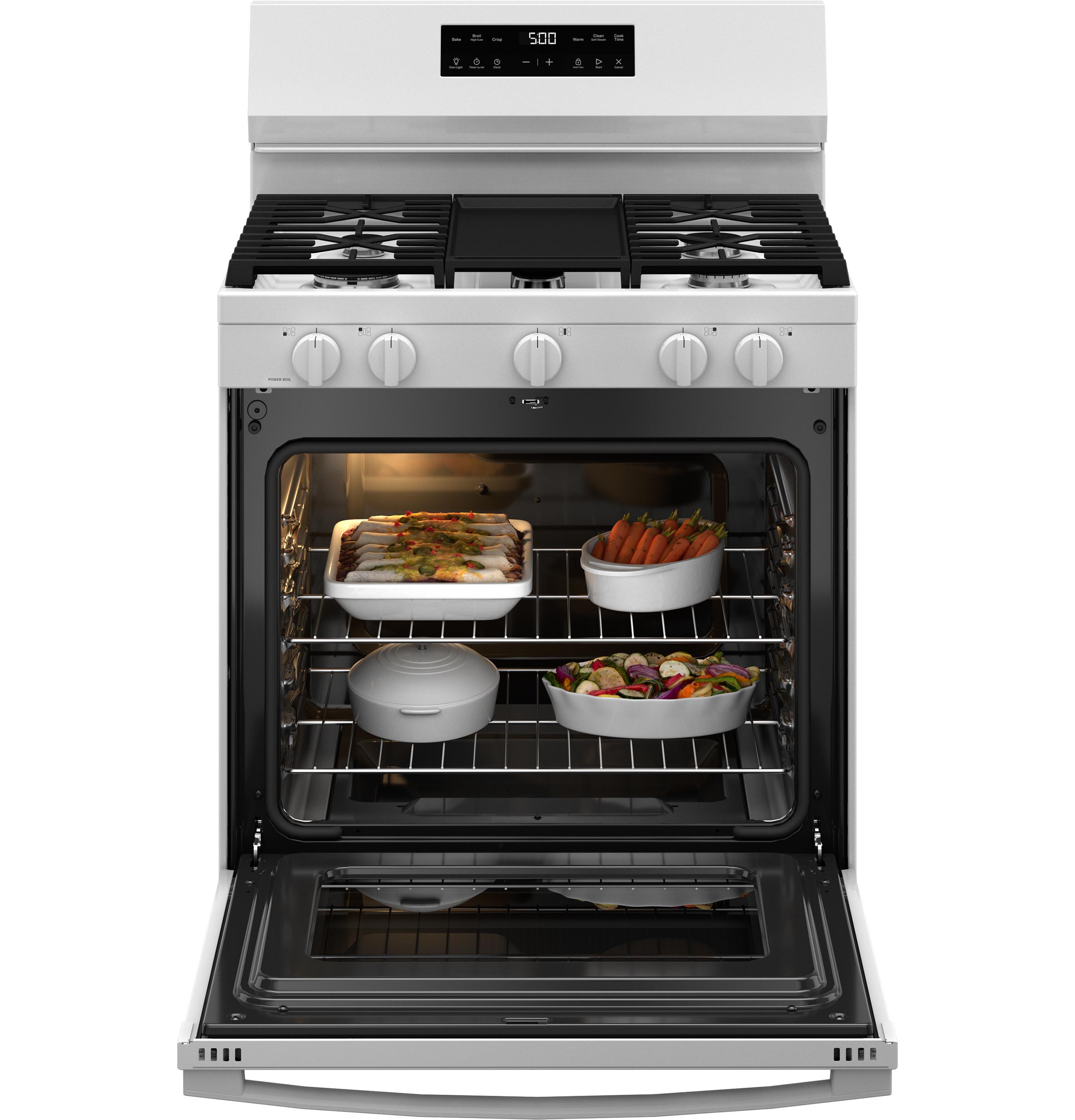 Cook an entire meal at once with room to spare in this oven with 5.3 cubic foot capacity.
