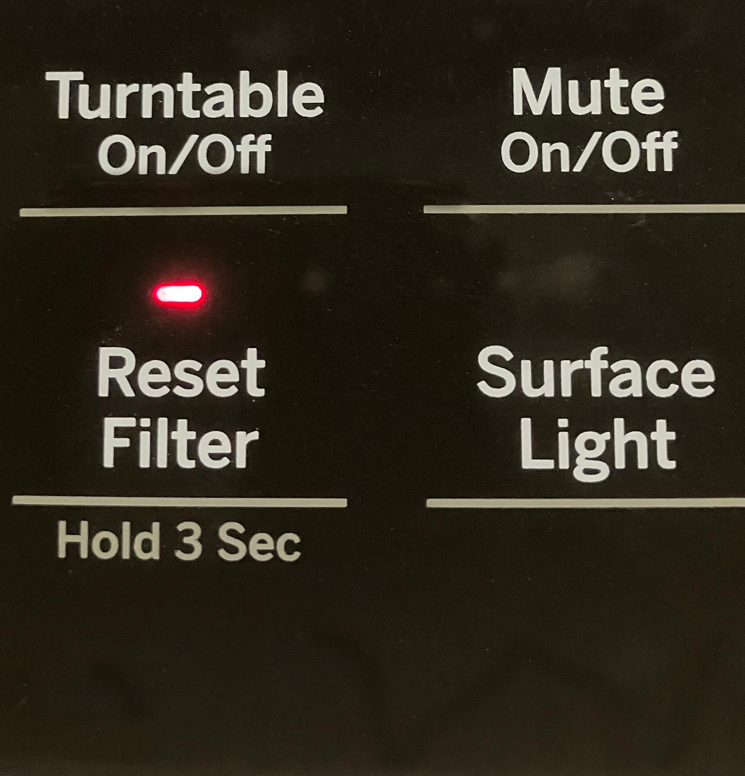 Light indicates when odor-removing charcoal filter needs to be replaced